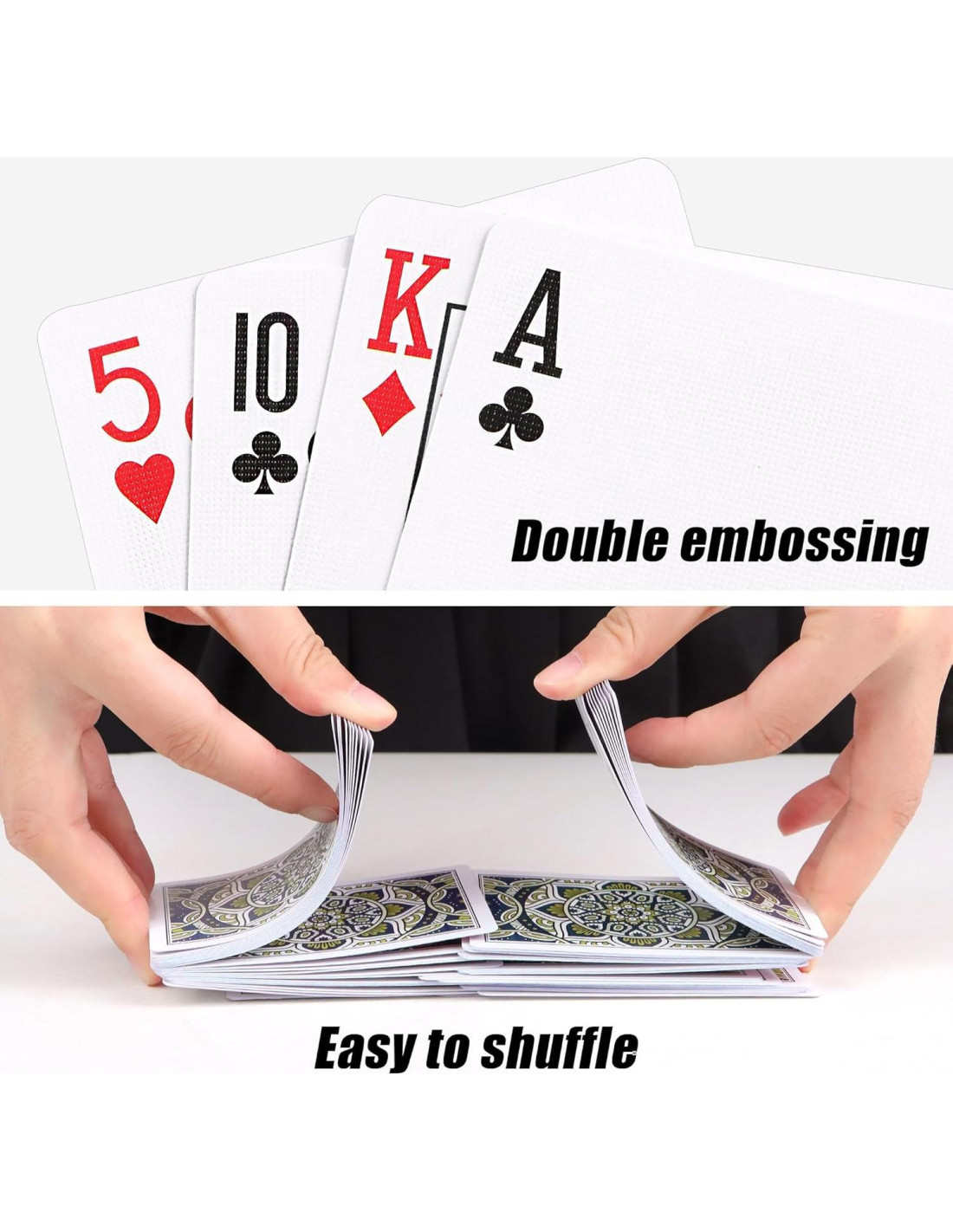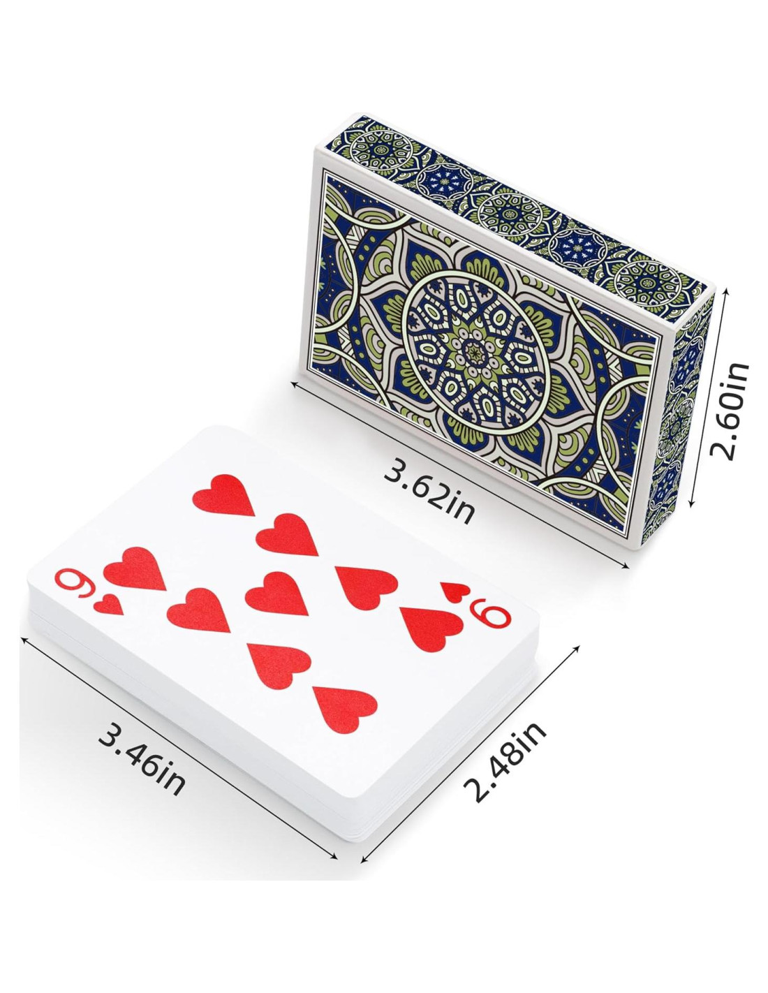 - Tamaño de Póker Amplio Índice Regular: Recibirás 2 mazos de cartas, incluye 1 Azul y 1 Rojo. Cada mazo contiene 52 cartas con palo y 2 comodines, tamaño 3.5 in x 2.5 in (63mm x 88mm)