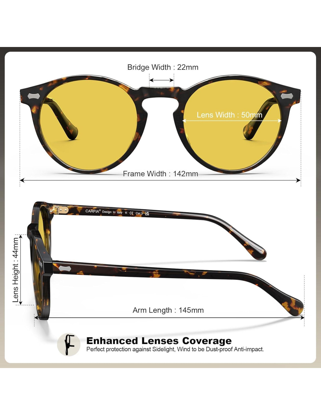- Estilo Clásico Atemporal: Las Gafas de Conducción Nocturna Redondas Carfia combinan una estética sofisticada con líneas limpias y modernas, ofreciendo un aspecto versátil para hombres elegantes. Perfectas para aquellos que valoran tanto la elegancia como la funcionalidad práctica en sus gafas.
