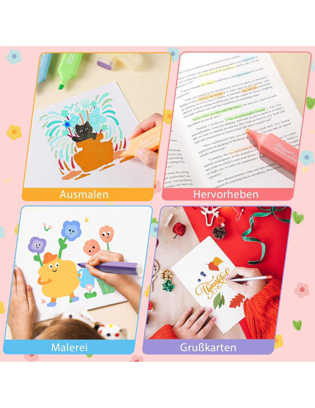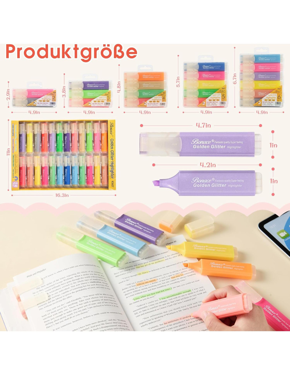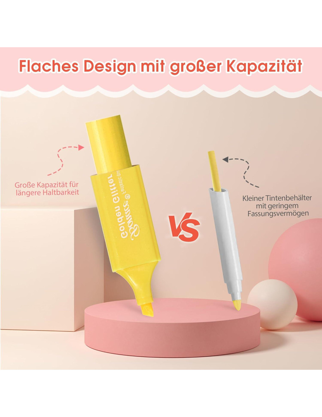 - Usos Creativos Sin Fin: Ideal para estudiantes, artistas y profesionales, estos resaltadores brillantes aportan un toque deslumbrante a tus planificadores, notas y proyectos creativos.