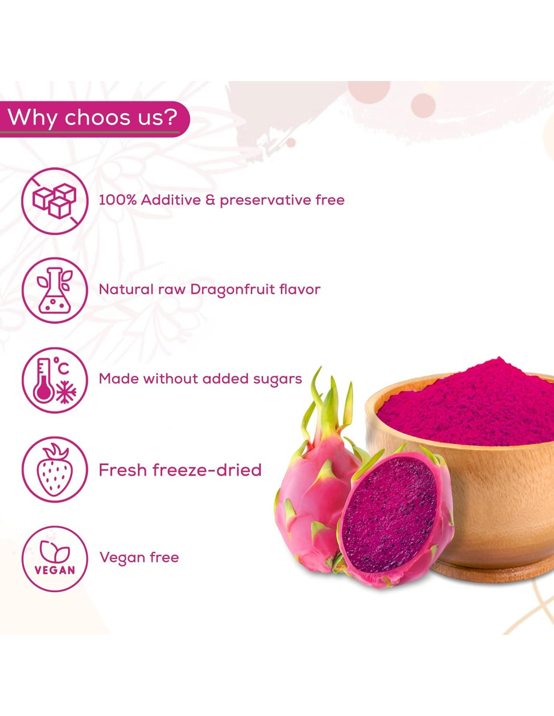 - 100% Polvo de Fruta Natural: Nuestro polvo de fruta se obtiene de dragón liofilizado, proporcionando un sabor natural y saludable. Experimenta la pura esencia del dragón sin aditivos artificiales.