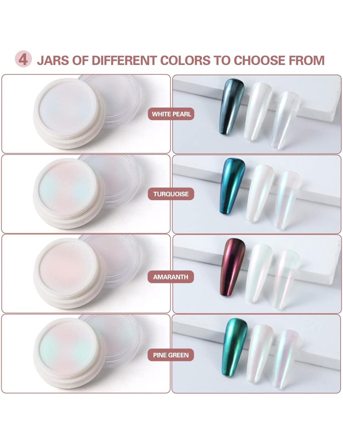 - CONTENIDO DEL PAQUETE: 4 piezas (cada una de 1 gramo) de polvos de pigmento espejo chrome de base blanca. Necesita ser utilizado con esmalte de uñas en gel y top coat sin limpieza