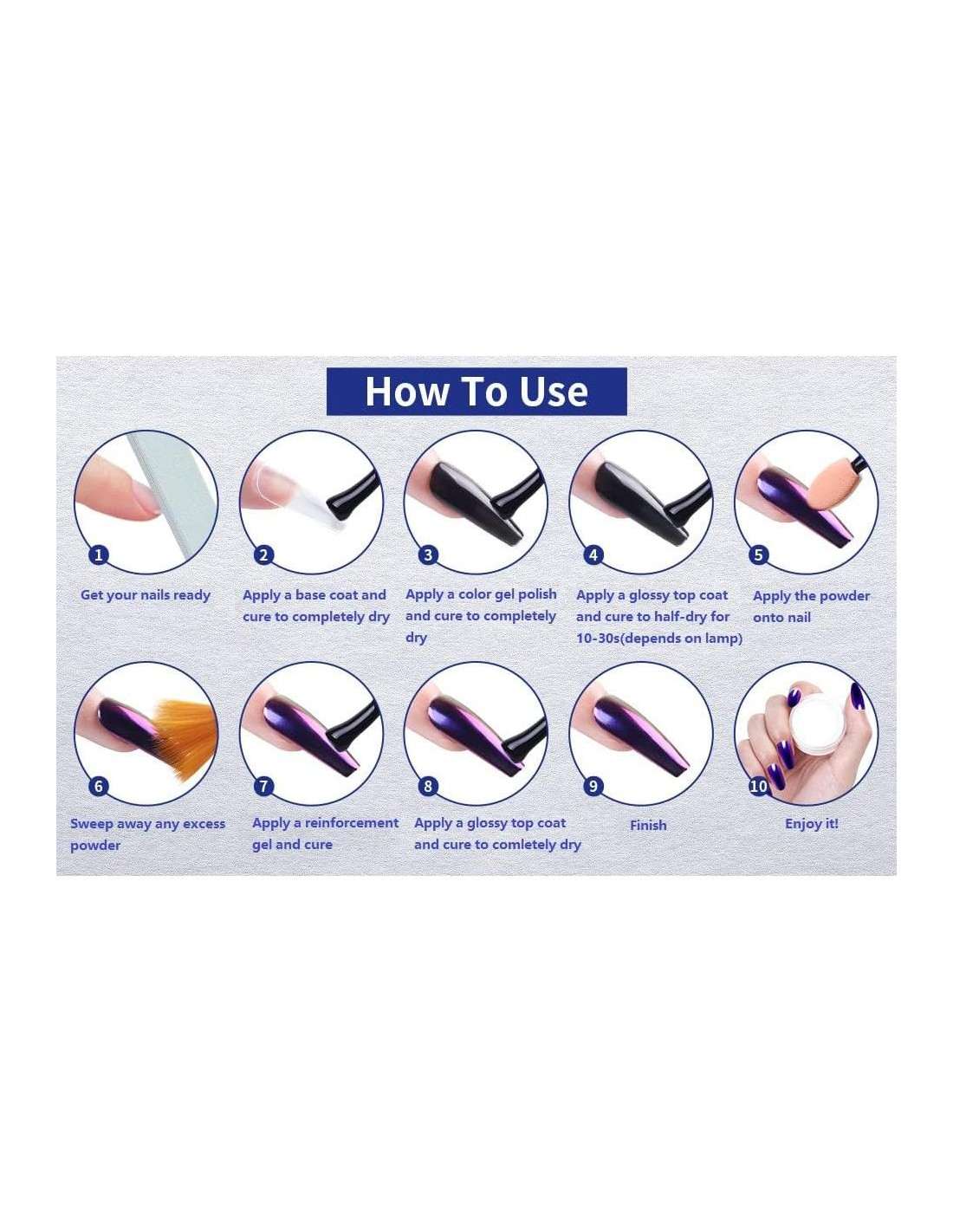 - FÁCIL DE USAR: Polvo super fino, fácil de aplicar mediante el uso correcto; Para obtener el mejor efecto en las uñas, necesita base coat y top coat sin limpieza. Este conjunto de polvo también es bueno para principiantes, solo siga las instrucciones y lo logrará