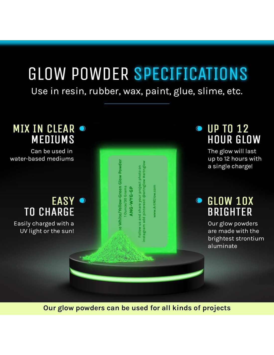 - Con cada pedido, recibirás la porción listada del polvo de estroncio aluminate recubierto de Art 'N Glow, conocido como la tecnología más brillante y duradera en el mercado de productos que brillan en la oscuridad. Nuestro excepcional pigmento que brilla viene cuidadosamente empaquetado en una bolsa de cierre hermético conveniente, asegurando facilidad de uso y almacenamiento. Disfruta de la libertad de explorar tus esfuerzos artísticos con confianza utilizando nuestros polvos que brillan versátiles.