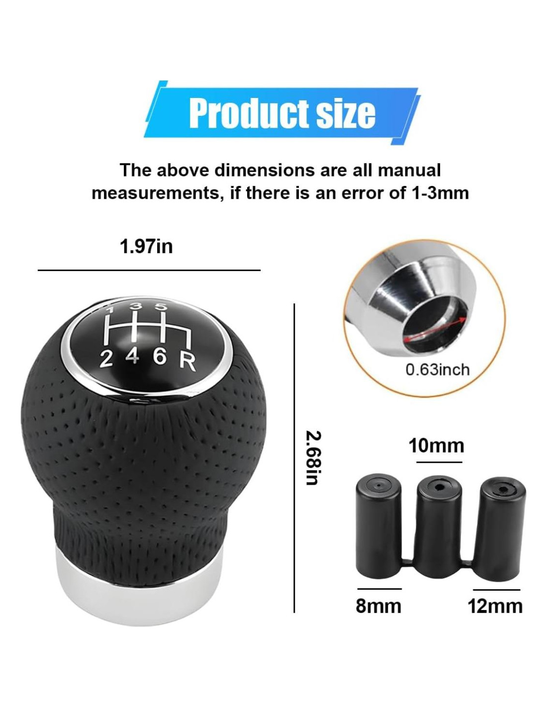 - [Paquete Incluye] : Recibirás 1 perilla de cambio de auto, 3 accesorios de junta de goma (los tamaños son 8mm, 10mm y 12mm respectivamente), 4 tornillos y 1 llave hexagonal.