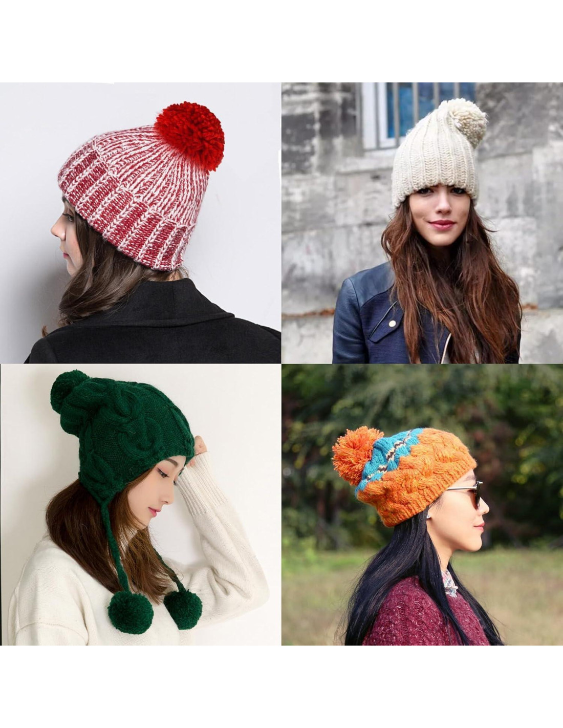 - Material de Pom Pom: Los pompones de hilo para sombreros están hechos a mano con hilo de buena calidad para un tacto suave y cómodo. Cada pom pom tiene hebras de hilo a juego para facilitar el atado.