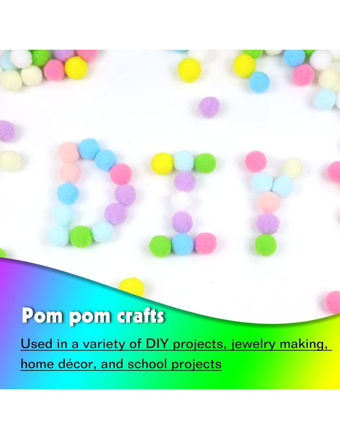 - [Material Seguro del Pom Pom]: el uso de material de poliéster de alta calidad, a través de tecnología avanzada, fuerte y duradero, no fácil de desvanecerse y deformarse, alta elasticidad y suave al tacto, muchos colores brillantes, nuestros pompones están hechos de materiales no tóxicos, por lo que tus hijos pueden hacer manualidades sin preocuparse por la exposición a productos químicos tóxicos.
