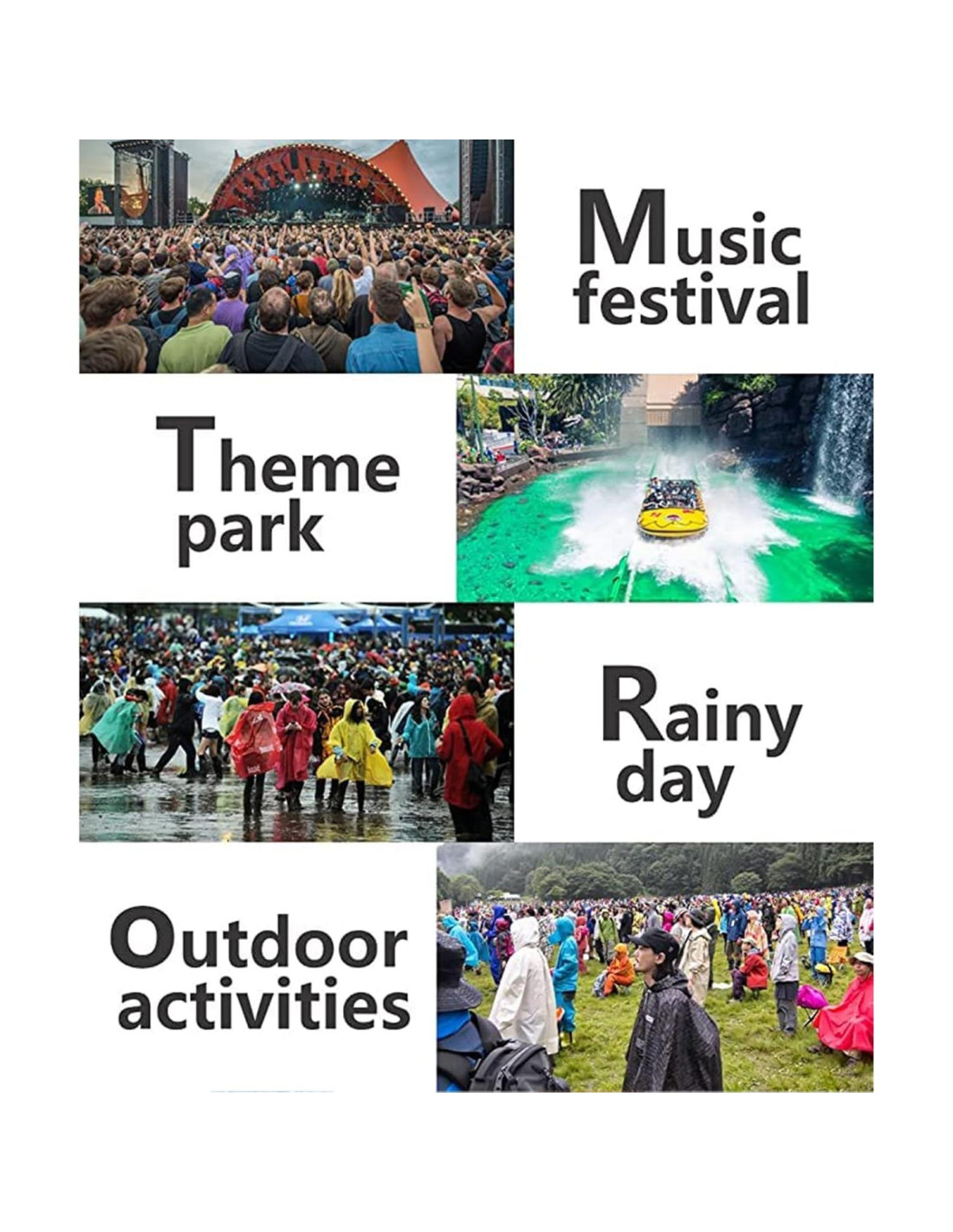 ¿Tienes la experiencia de ser sorprendido por una lluvia repentina? ¿Se mojarán tu bolso y zapatos con un paraguas en un día lluvioso? ¿Te arrepentiste de no llevar un impermeable cuando jugabas en el parque acuático? ¡El impermeable reutilizable GUKOY es tu mejor opción! Los impermeables portátiles son muy útiles y convenientes, perfectos para un viaje a Disney World, salidas en primavera, viajes familiares, parques temáticos, conciertos al aire libre, eventos deportivos, viajes, camping, senderismo, pesca, ciclismo y otras actividades al aire libre.