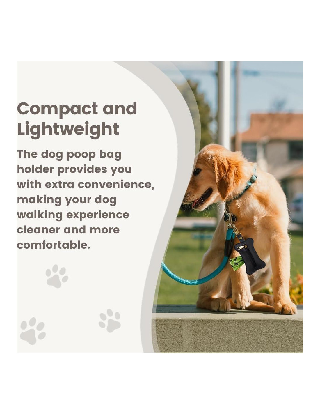 - Conveniente para el Usuario: Nuestro empaque tiene un soporte para bolsas de desechos de perro en forma de hueso. Tiene suficiente capacidad para sostener múltiples bolsas de excremento. Esto significa que no tienes que reemplazar las bolsas con frecuencia. Te proporciona una conveniencia extra, haciendo que tu experiencia de pasear al perro sea más limpia y cómoda.
