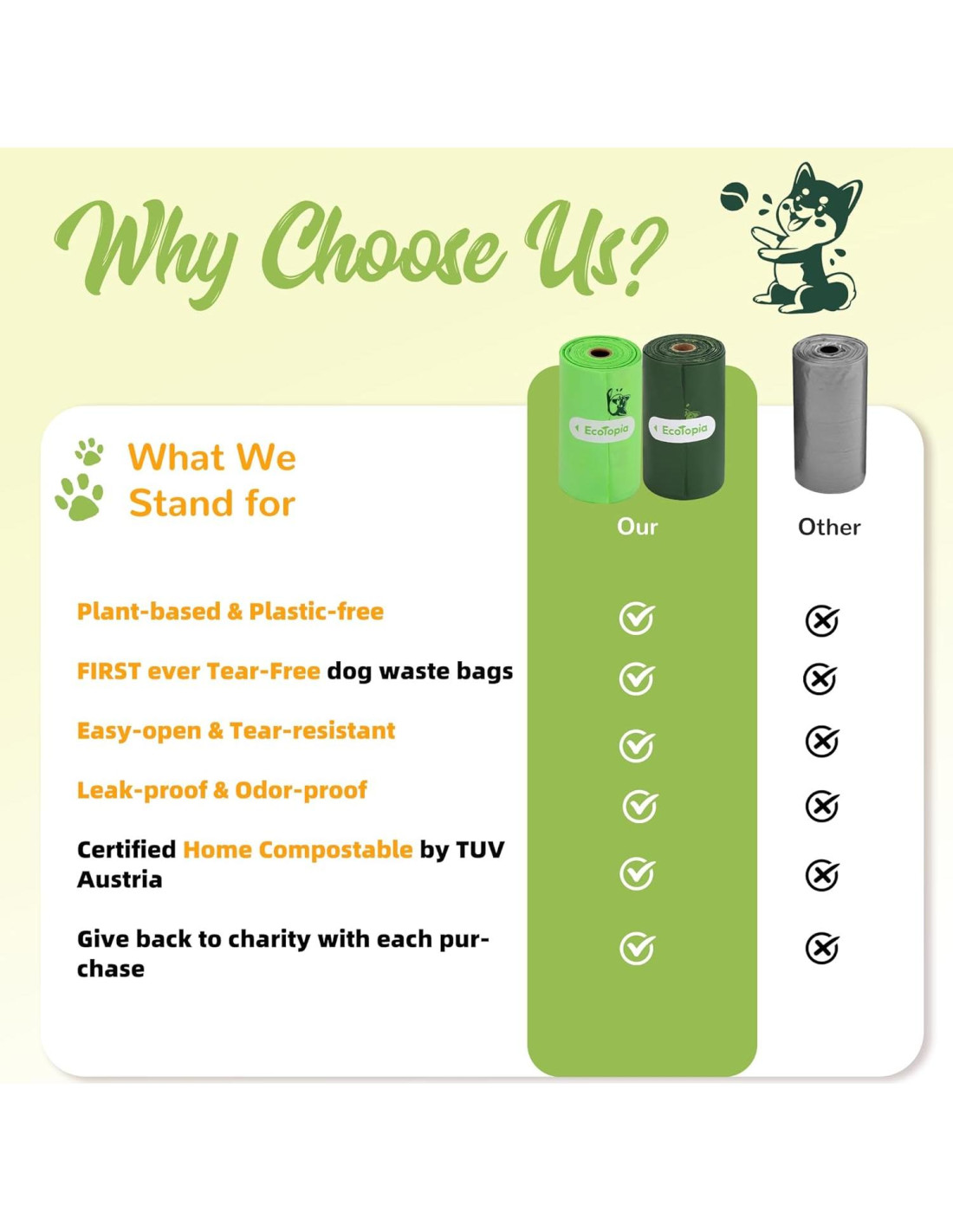- Diseño de plástico reciclable y duradero: A diferencia de otros materiales, nuestro soporte para bolsas de excremento de perro para correa está fabricado con plástico reciclable resistente, asegurando que no se deforme y permite una dispensación suave de las bolsas de excremento de EcoTopia.