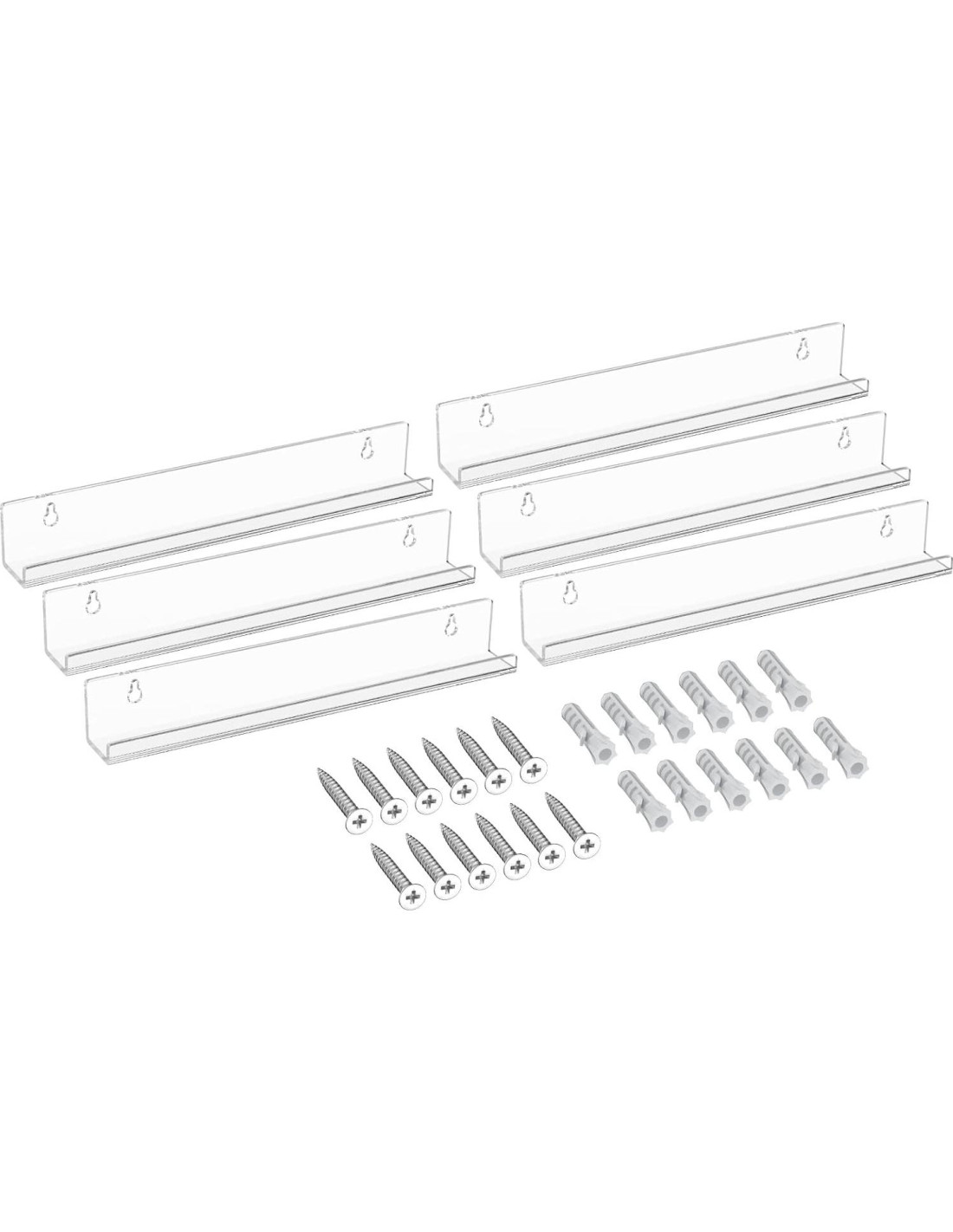 - Componentes incluidos: 6 x estante de acrílico para discos, 12 x tornillos y anclajes