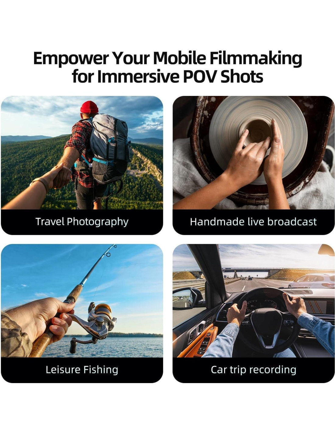 - Ángulos Ajustables de Varios POV/VLOG - El soporte para teléfono en el cuello no solo realiza el propósito de cambiar entre el modo de grabación en retrato y paisaje arbitrariamente, sino que también satisface a los creadores de contenido de videos cortos con modos de grabación versátiles: paisaje, retrato, cenital y ángulo bajo.