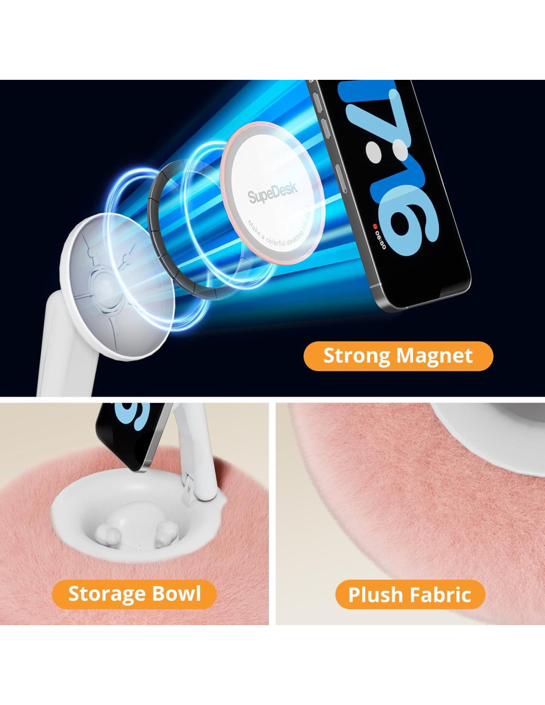 - [Soporte Magnético para Teléfono] Nuestro soporte cuenta con un fuerte soporte magnético que mantiene tu teléfono de forma segura en su lugar. Es perfecto para uso manos libres, ya sea que estés leyendo, viendo videos o asistiendo a reuniones virtuales. El diseño magnético confiable asegura que tu dispositivo se mantenga estable y seguro durante su uso.
