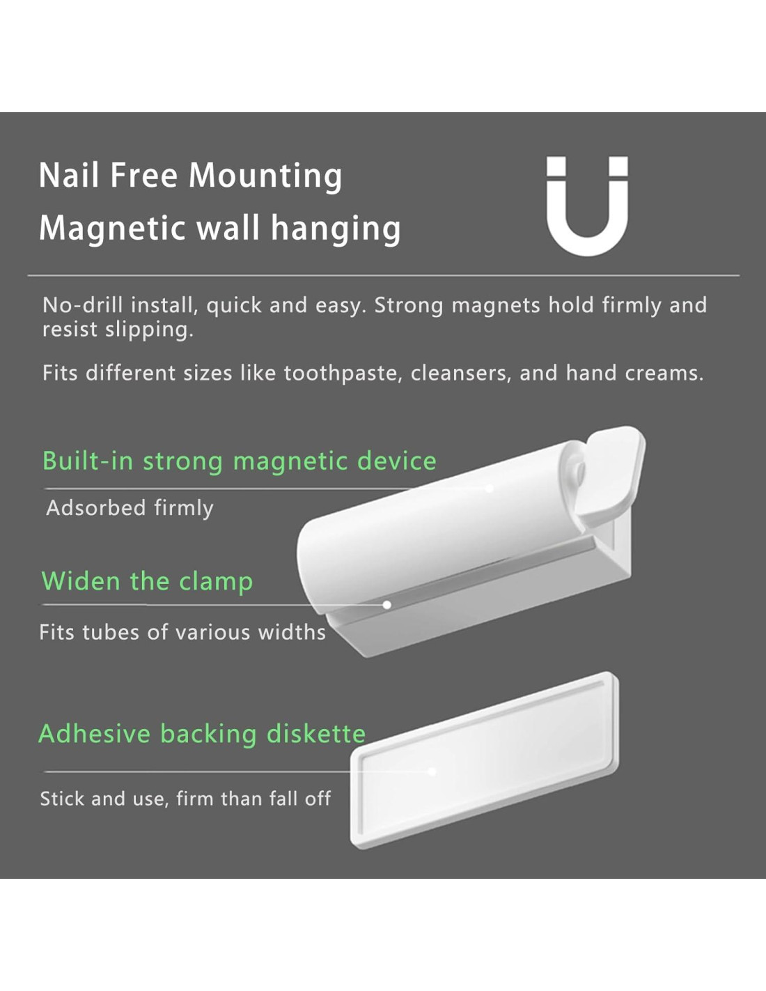 - FÁCIL DE INSTALAR: No se requieren perforaciones ni agujeros para este dispensador de pasta de dientes montado en la pared, lo que facilita la instalación sin dañar la pared. Antes de la instalación, limpie la pared, presione la tira adhesiva firmemente y espere 2 horas antes de usar. Este dispensador es compatible con la mayoría de los tubos de pasta de dientes.
