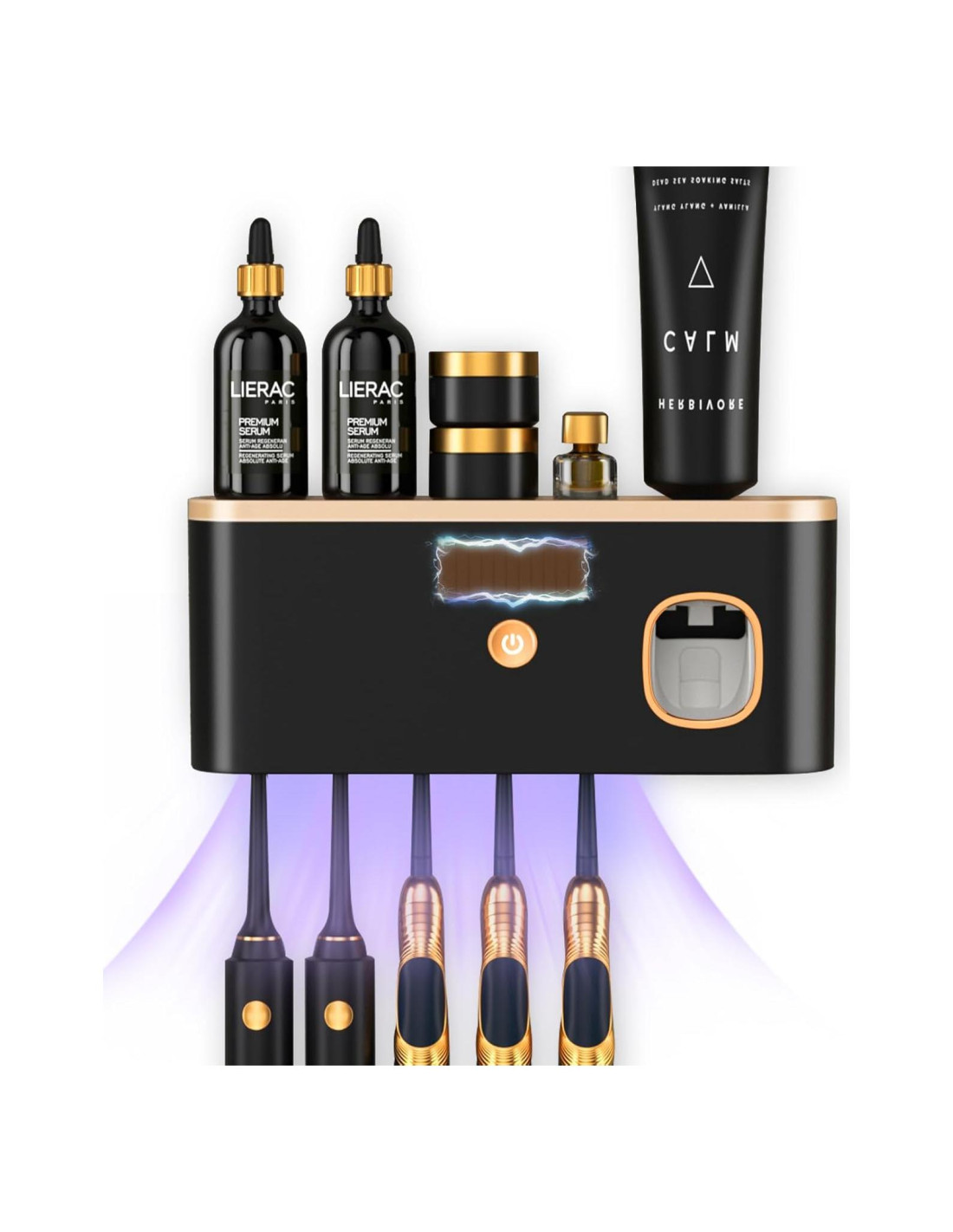 - Almacenamiento Organizado No solo un soporte para cepillos de dientes y dispensador de pasta de dientes, sino también una bandeja de almacenamiento. Nuestro soporte para cepillos de dientes mantiene tus cepillos de dientes, pasta de dientes y otros elementos esenciales de cuidado bucal