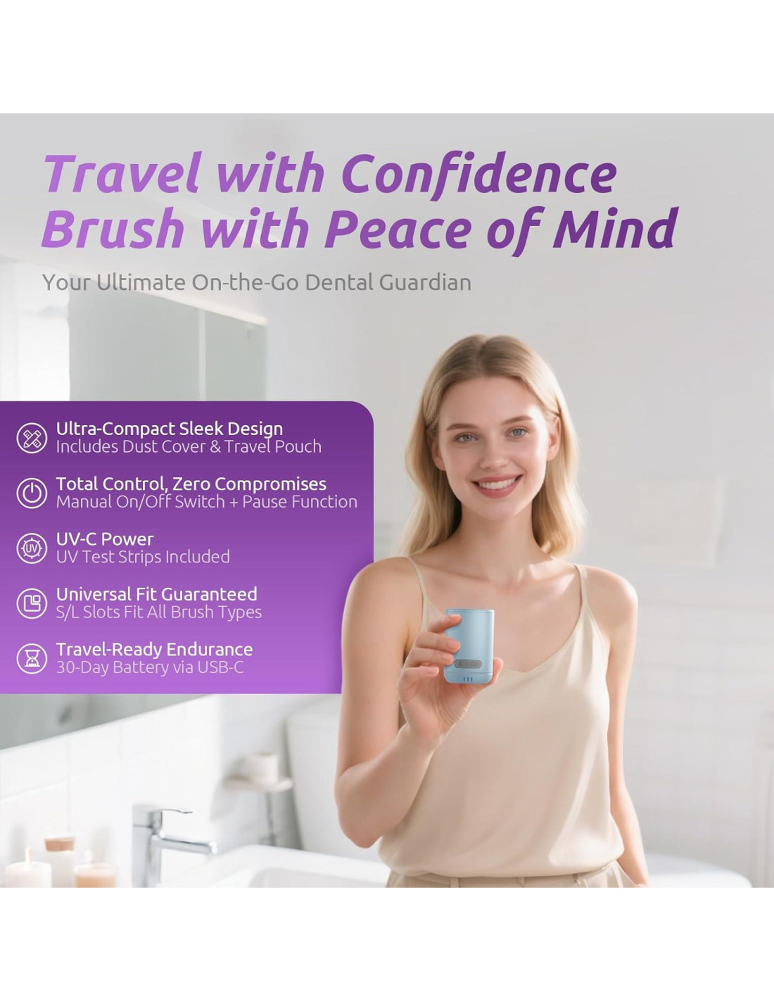 - Siempre listo para llevar: Con carga USB-C, una sola carga puede durar hasta 30 días. No tendrás que estresarte por el soporte de cepillo de dientes UV quedándose sin batería mientras viajas.