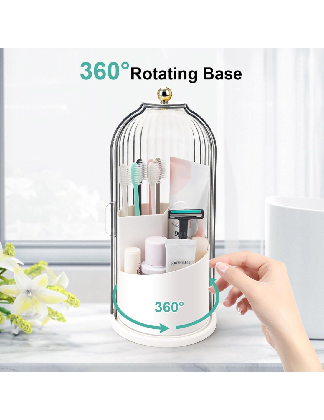 - Soportes para cepillos de dientes con tapa deslizante. El soporte para cepillos de dientes cuenta con una tapa deslizante de 180, que se puede cerrar y abrir suavemente para evitar que la suciedad y el agua manchen el cepillo de dientes. El interior del soporte para cepillos de dientes se puede rotar 360 para un fácil acceso a tu cepillo de dientes, pasta de dientes y otros artículos desde cualquier ángulo.