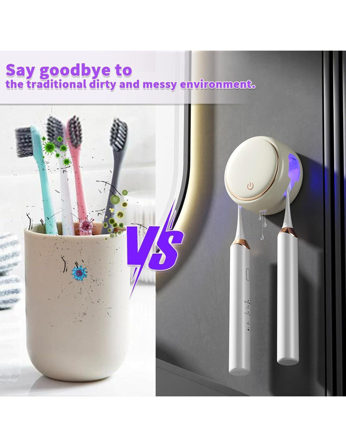 - [Limpieza Eficiente] Este soporte de cepillos de dientes portátil está equipado con tecnología de limpieza avanzada, que puede eliminar efectivamente el 99.99% de sustancias nocivas en el cepillo de dientes, construyendo una sólida línea de defensa para tu salud bucal, y haciendo que cada cepillado sea con tranquilidad.