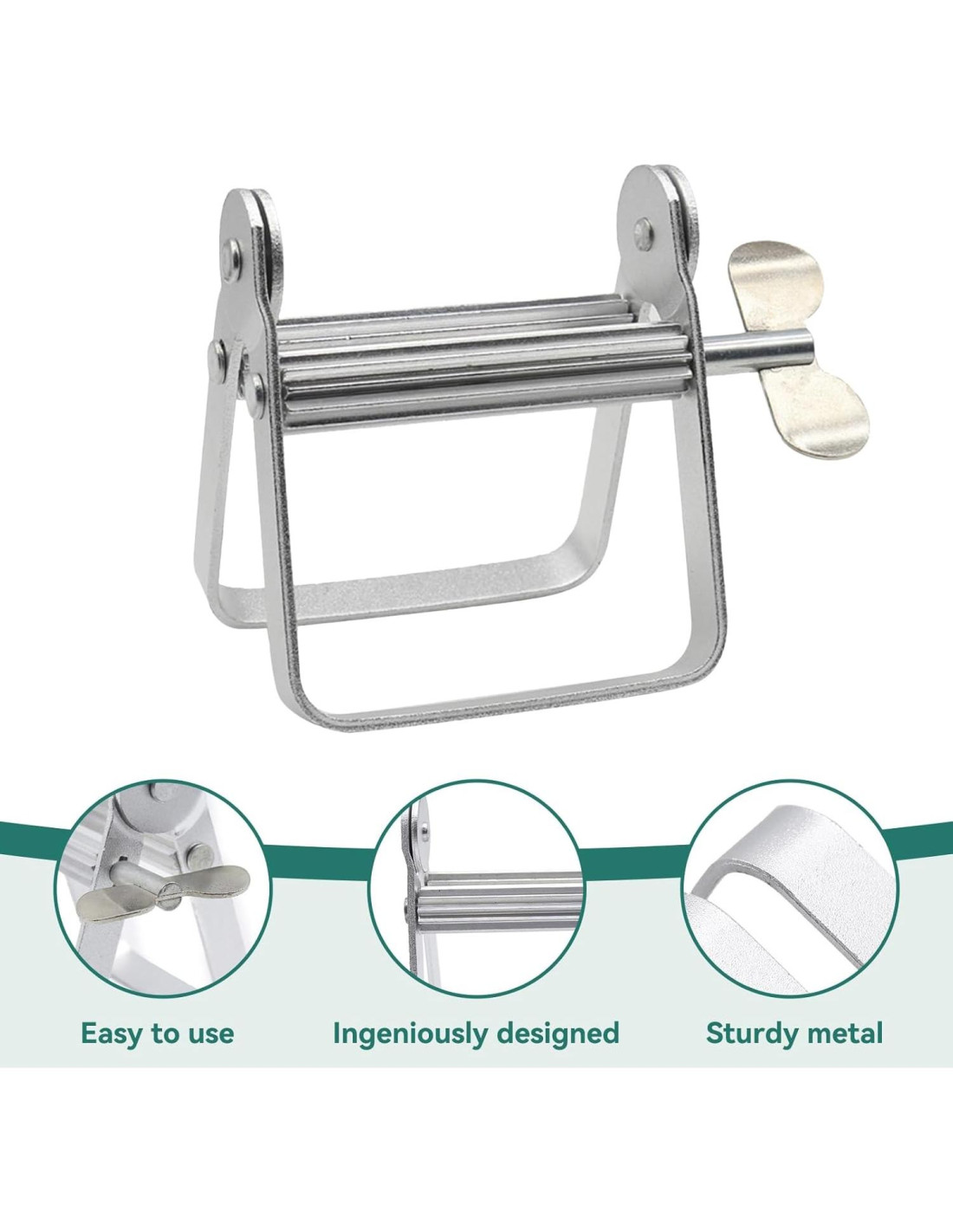 - Diseño Razonable: El exprimidor de tubo de pasta de dientes de metal está ingeniosamente diseñado y es conveniente de usar. Puede extraer fácil y completamente los pigmentos restantes, pasta de dientes, betún, etc. dentro del tubo