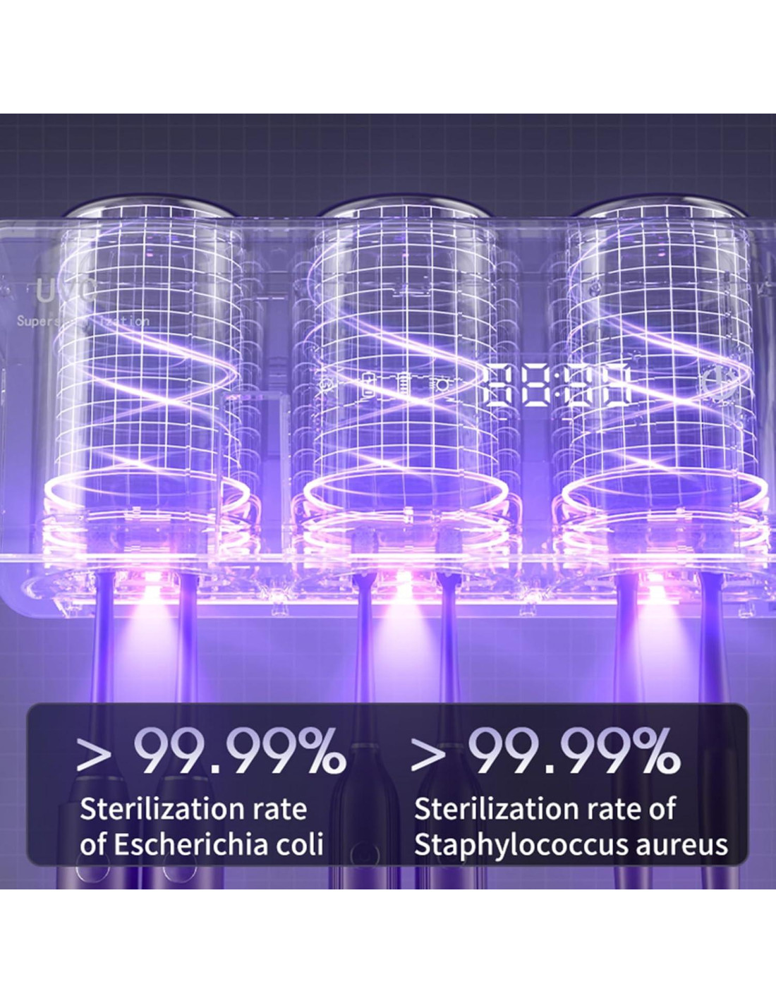 - Limpieza Cíclica Inteligente de 24 Horas: El soporte de cepillo de dientes para baño está equipado con una pantalla visual LCD de alta definición, que muestra el estado de funcionamiento de un vistazo. Limpieza cíclica durante 1 minuto cada 6 horas, activa el modo de secado a temperatura constante de 10 minutos en modo enchufado para satisfacer diferentes hábitos de cepillado, y protección inteligente las 24 horas.