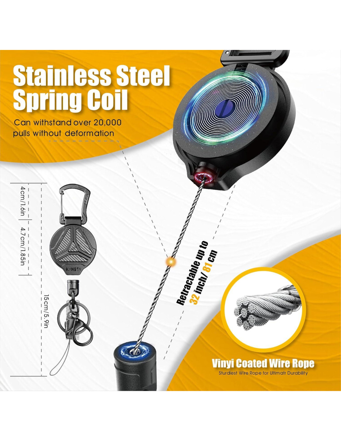 - [Textura de Fibra de Carbono Premium] El llavero retráctil pesado moldeado a medida de KAHETA combina durabilidad ligera, resistencia a rayones y una carcasa de ABS que absorbe impactos con una elegante textura de fibra de carbono para un estilo industrial moderno. El cable retráctil de 32 pulgadas (81.28 cm) del llavero para tarjetas maneja sin esfuerzo llaves, identificaciones, USB, fundas de teléfono, herramientas y se mantiene libre de enredos. Conecta múltiples elementos esenciales (hasta 15 oz) y mantenlos seguros pero accesibles
