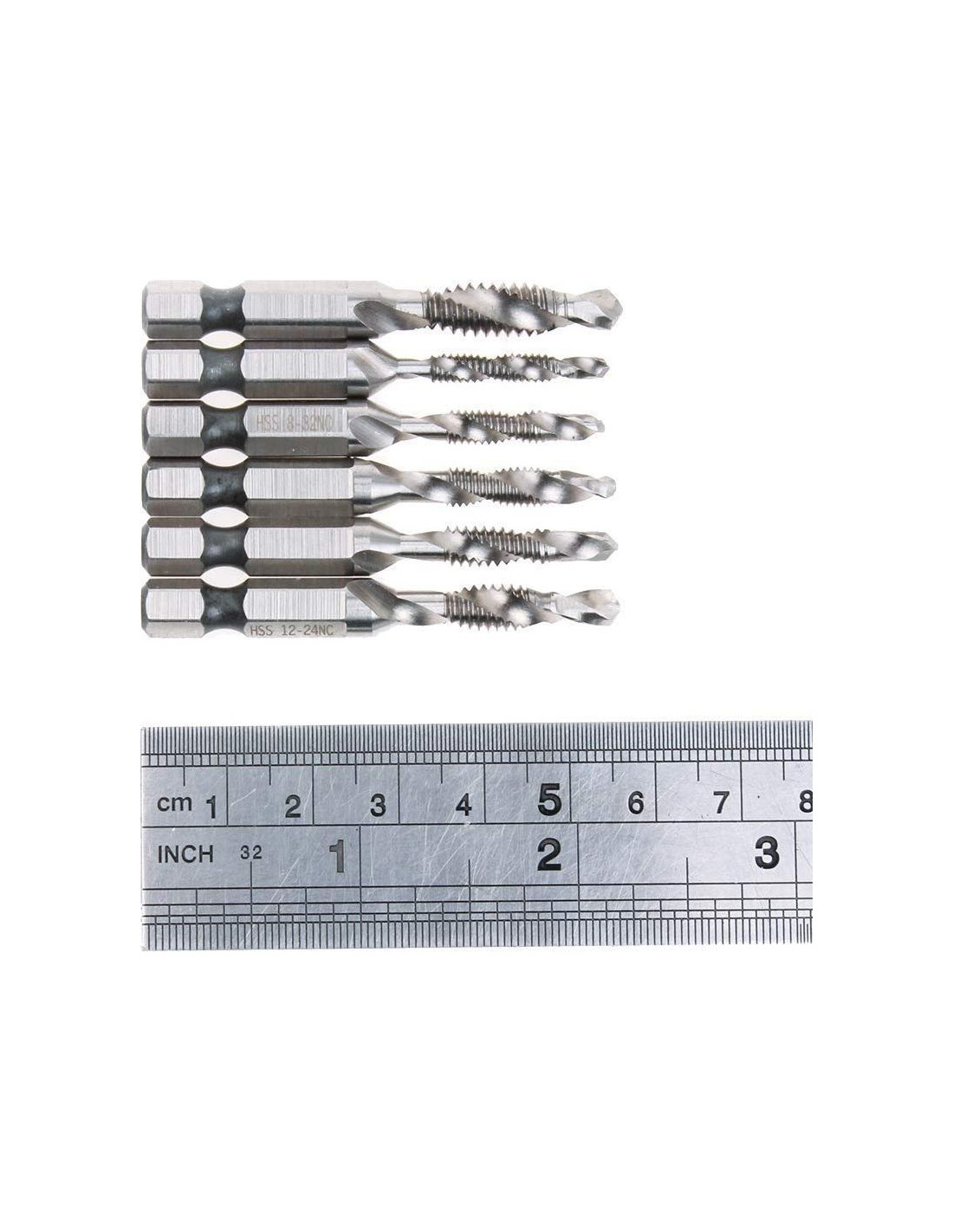- Este es un juego de brocas y machos de rosca SAE, por lo que tiene alta versatilidad. Cada broca macho está grabada con una etiqueta, lo que es conveniente para que elijas el tamaño que te conviene. El vástago hexagonal de cambio rápido de 1/4 de pulgada (6.35mm) tiene un extremo cónico para prevenir golpes excesivos. La conicidad hacia atrás excede el macho para prevenir sobre-perforación y daños en la rosca.