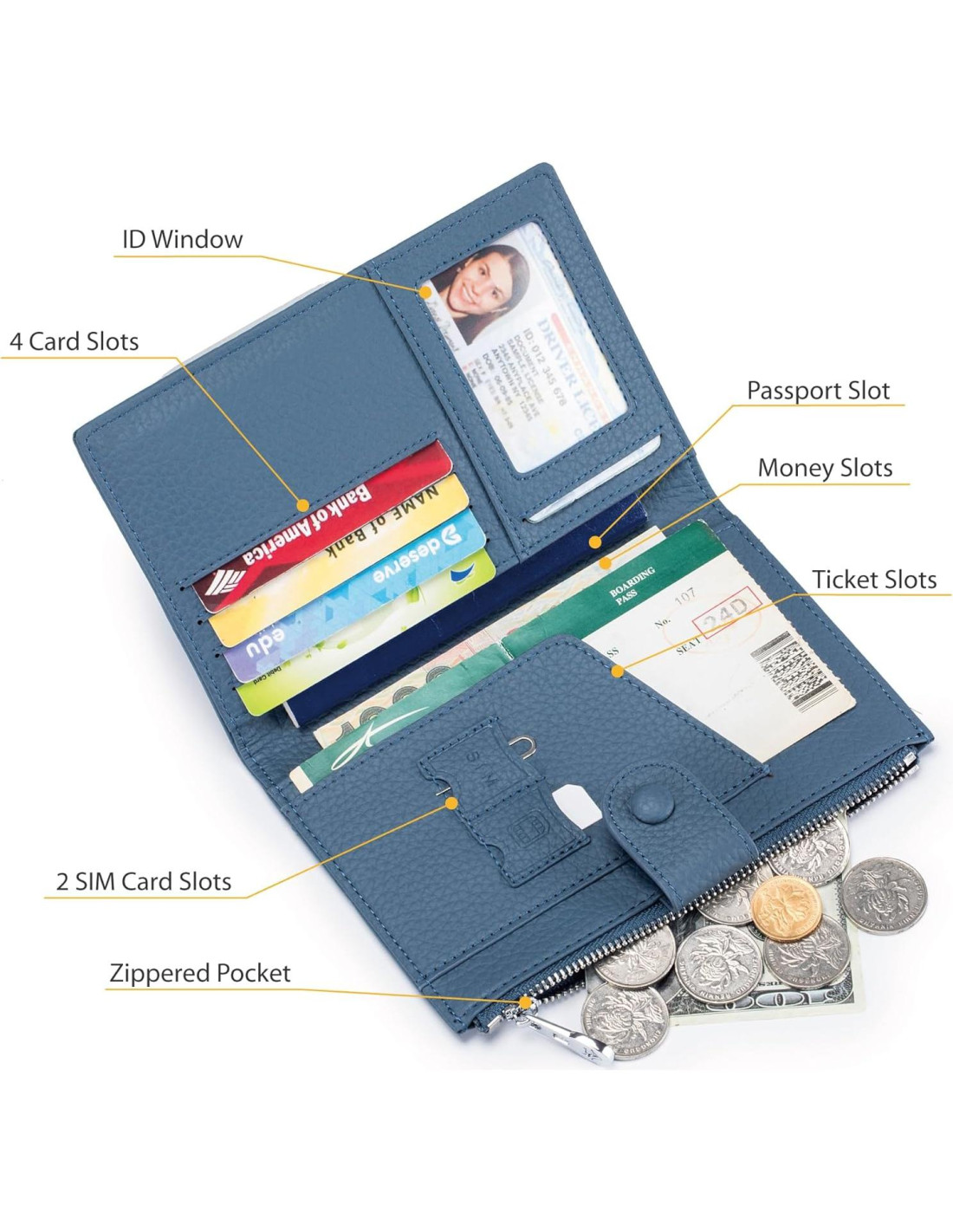 Portafolios de pasaporte para mujeres con bolsillo con cremallera/Billetera de pasaporte con bloqueo RFID para mujeres