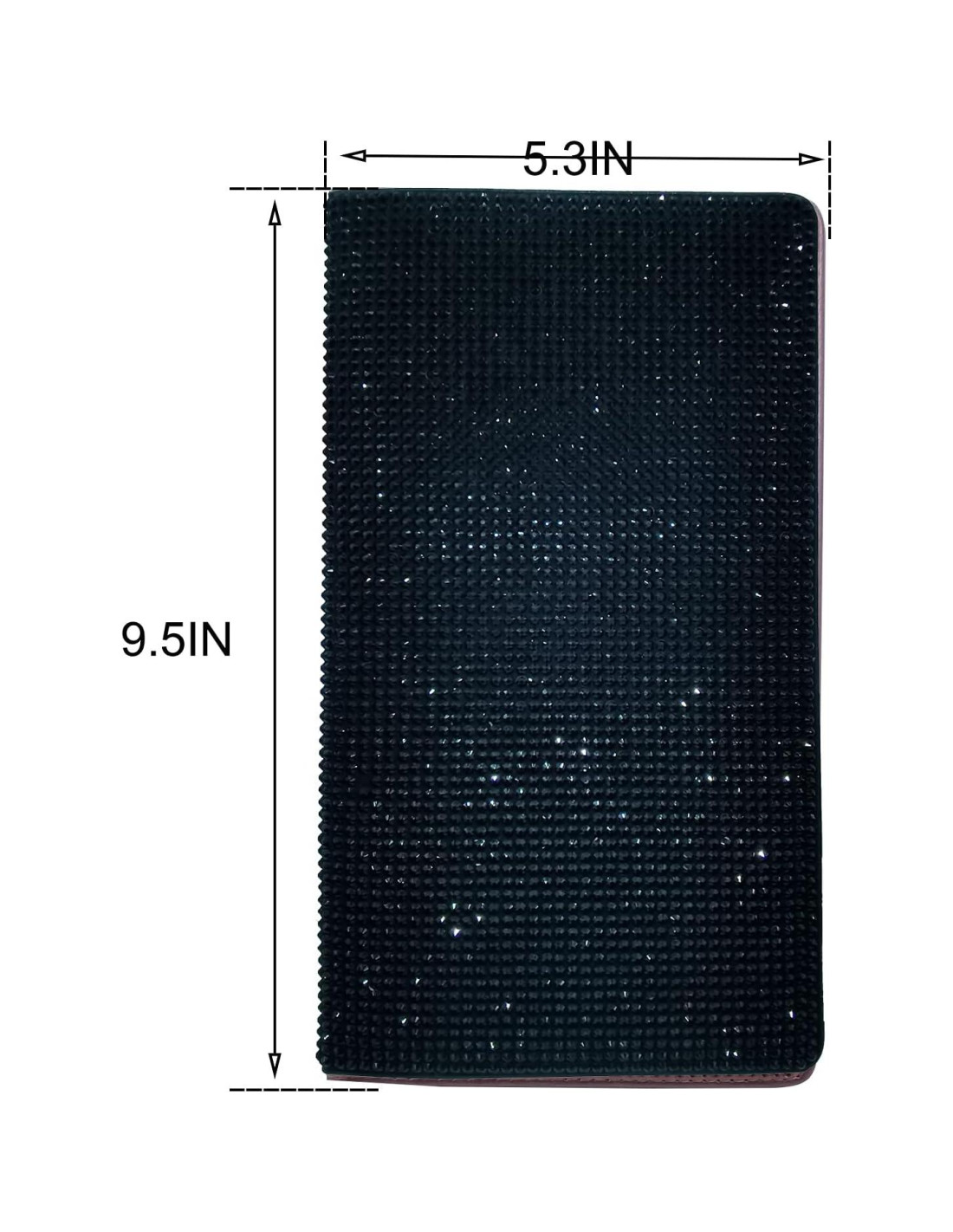 - Característica: el soporte de documentos brillante y chispeante para automóvil está hecho de cuero PU de alta calidad y cubierta de rhinestone brillante y duradera de PVC, que tiene la mejor costura y elaboración. Proporciona una sensación de tacto suave y buena apariencia.