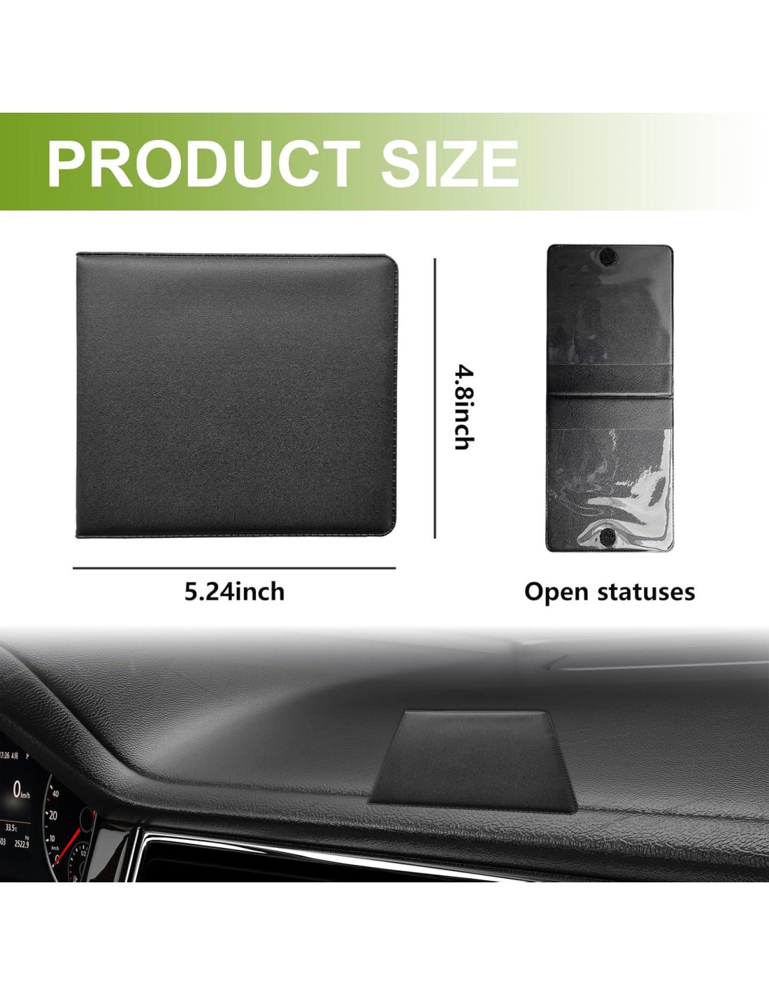 - [Fácil de Encontrar] : Esta carpeta de auto presenta el tamaño ideal con un diseño inteligente, midiendo solo 5.2 x 4.8 pulgadas (13.2 cm * 12.2 cm), asegurando una fácil colocación en tu guantera o consola. La carpeta incluye un bolsillo interno claro con bolsillos transparentes diseñados para máxima visibilidad, facilitando la lectura de documentos como tu tarjeta de seguro y registro de vehículo.