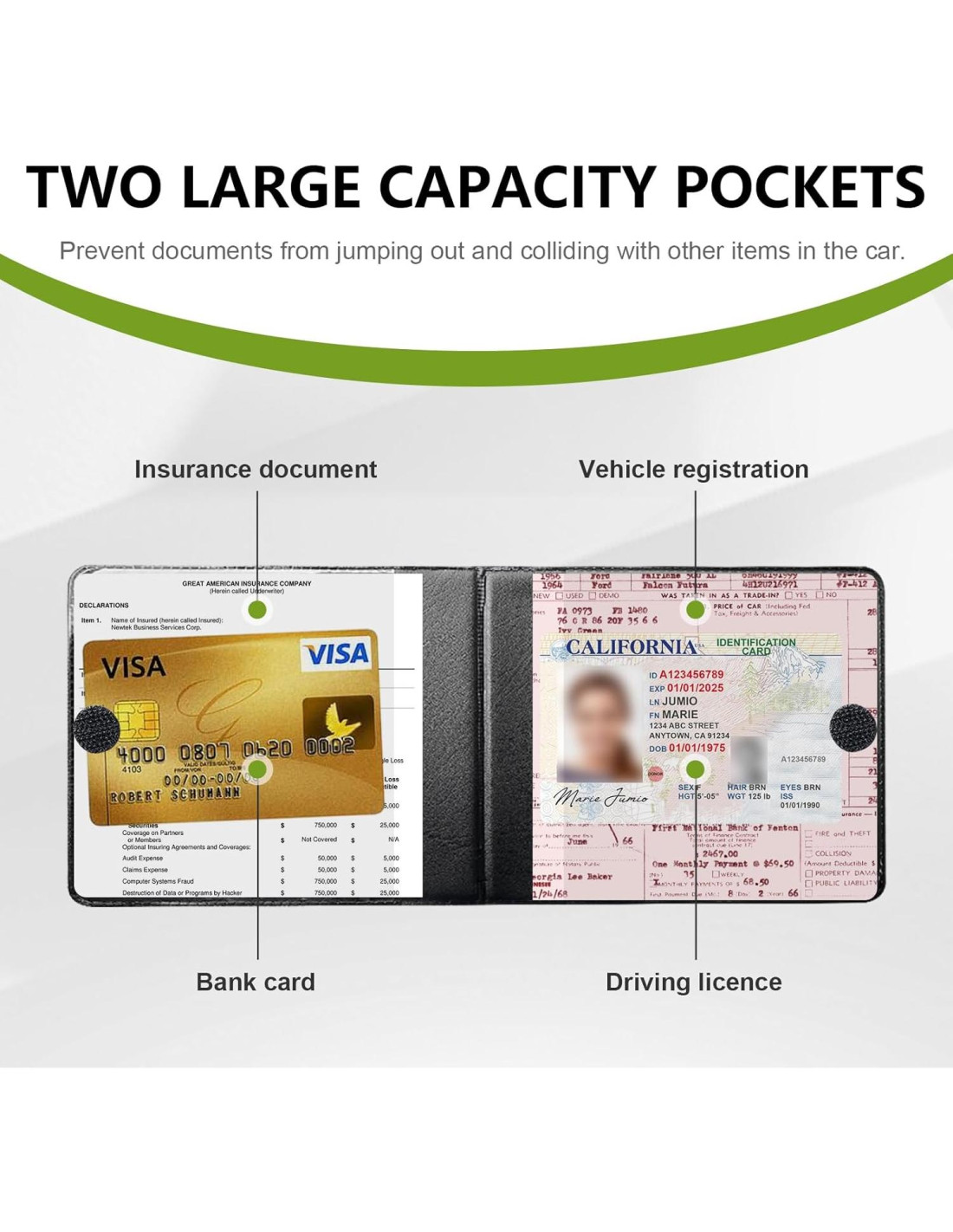 - [Regalo Perfecto] : Este portadocumentos de registro y seguro de auto es la mejor opción como regalo. Permite un acceso rápido y una exhibición de los documentos necesarios. Sirve no solo como el organizador de tarjetas perfecto, sino también como un regalo sorpresa encantador para familiares, amigos y colegas en ocasiones como Navidad y cumpleaños.