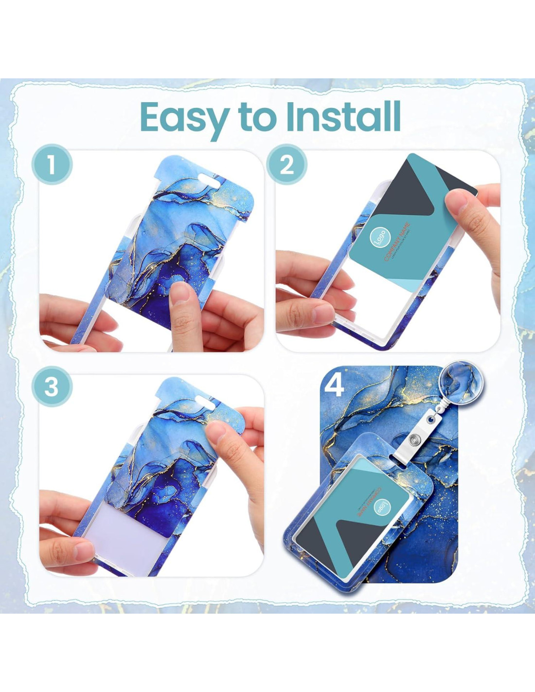 - Lo que recibirás: Obtendrás 10 juegos de carretes de badge retráctiles y portatarjetas con 10 diferentes patrones de mármol; Nuestro portatarjetas retráctil cuenta con un elegante y estiloso acabado de mármol; Deshazte de los viejos portatarjetas aburridos y reinventa tu imagen profesional con este colorido accesorio