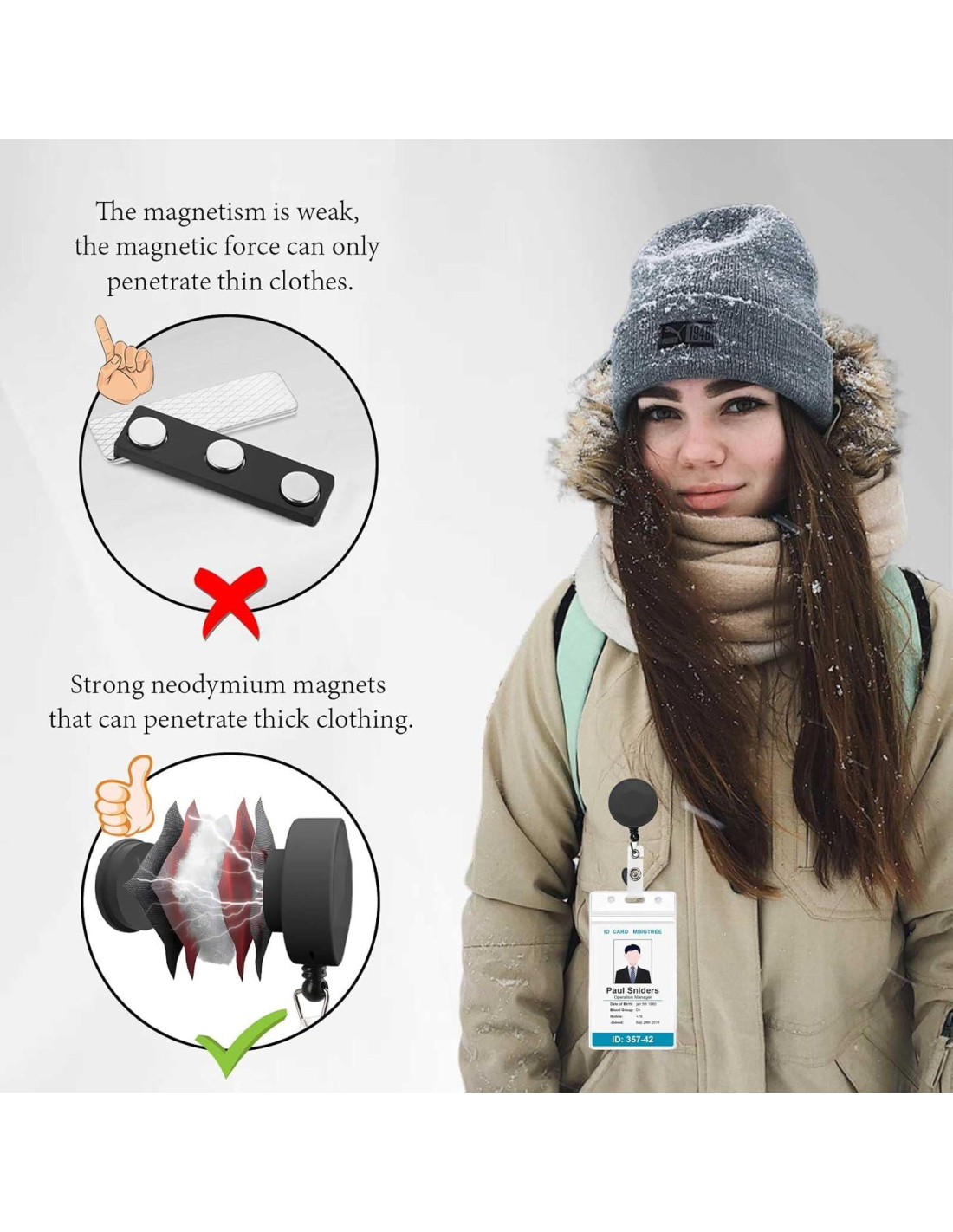 - [Portatarjetas Magnético Profesional] El portatarjetas magnético anti-caída está diseñado para el personal médico. El fuerte núcleo magnético se puede fijar firmemente a la superficie de uniformes, batas blancas y trajes formales. La superficie magnética ampliada de 1.26 pulgadas (3.2 cm) es adecuada para insignias de enfermeras y múltiples tarjetas de acceso para ser utilizadas juntas, y se mantiene estable y no se mueve durante turnos de 12 horas.