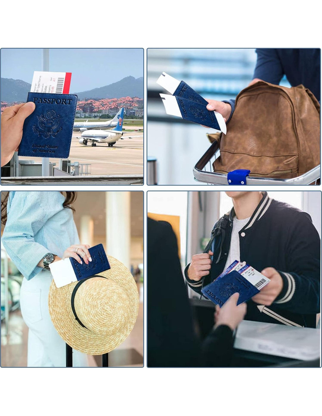 - Conveniente para viajar. Las carteras de pasaporte pueden contener tu pasaporte y tarjeta de vacunación en un bolsillo y proteger de daños