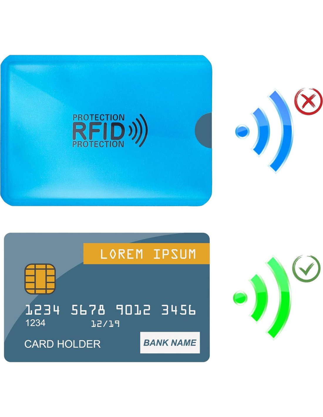 - Características Prácticas Las fundas bloqueadoras RFID están diseñadas para proteger tarjetas de crédito, tarjetas de identificación de fraudes electrónicos o robos, pueden prevenir eficazmente la desmagnetización y el deslizamiento de tarjetas, y evitar que los ladrones escaneen chips digitales y electrónicos.