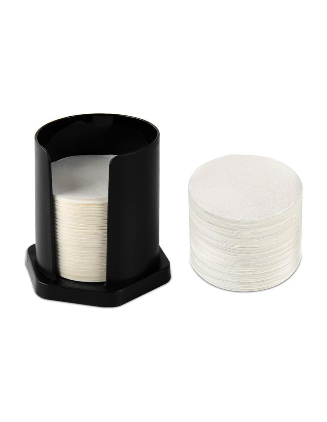 - [Tamaño del Paquete de Filtros de Aeropress con Soporte] - El diámetro de los filtros es de 6.35 cm (2.5 pulgadas), adaptado a todas las máquinas de café espresso aeropress. La capacidad del soporte de filtro de café es de aproximadamente 500 filtros de aeropress, la altura es de 8.38 cm (3.3 pulgadas), el diámetro de la base es de 8.64 cm (3.4 pulgadas), el diámetro superior es de 6.86 cm (2.7 pulgadas).