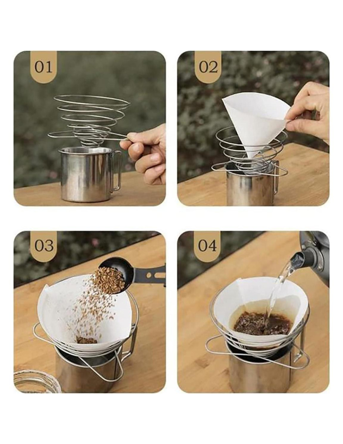 ¿Alguna vez has querido beber café fresco en camping o escalada? Con este soporte de filtro de café, puedes preparar café filtrado fácilmente en cualquier lugar. Puedes beber café delicioso hirviendo agua y poniendo granos de café en el filtro. Hecho de acero inoxidable duradero, se puede plegar suavemente. Después de usarlo, es fácil de usar y se puede utilizar repetidamente.