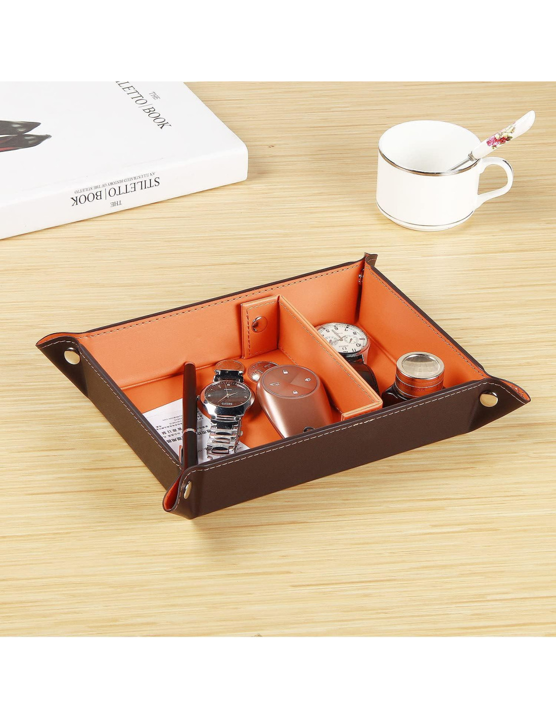 - Exquisita Mano de Obra: Bandejas de valet de PU cuero premium y duradero para mujeres/hombres, unión de doble cuero, superficie texturizada e impermeable, fácil de limpiar.