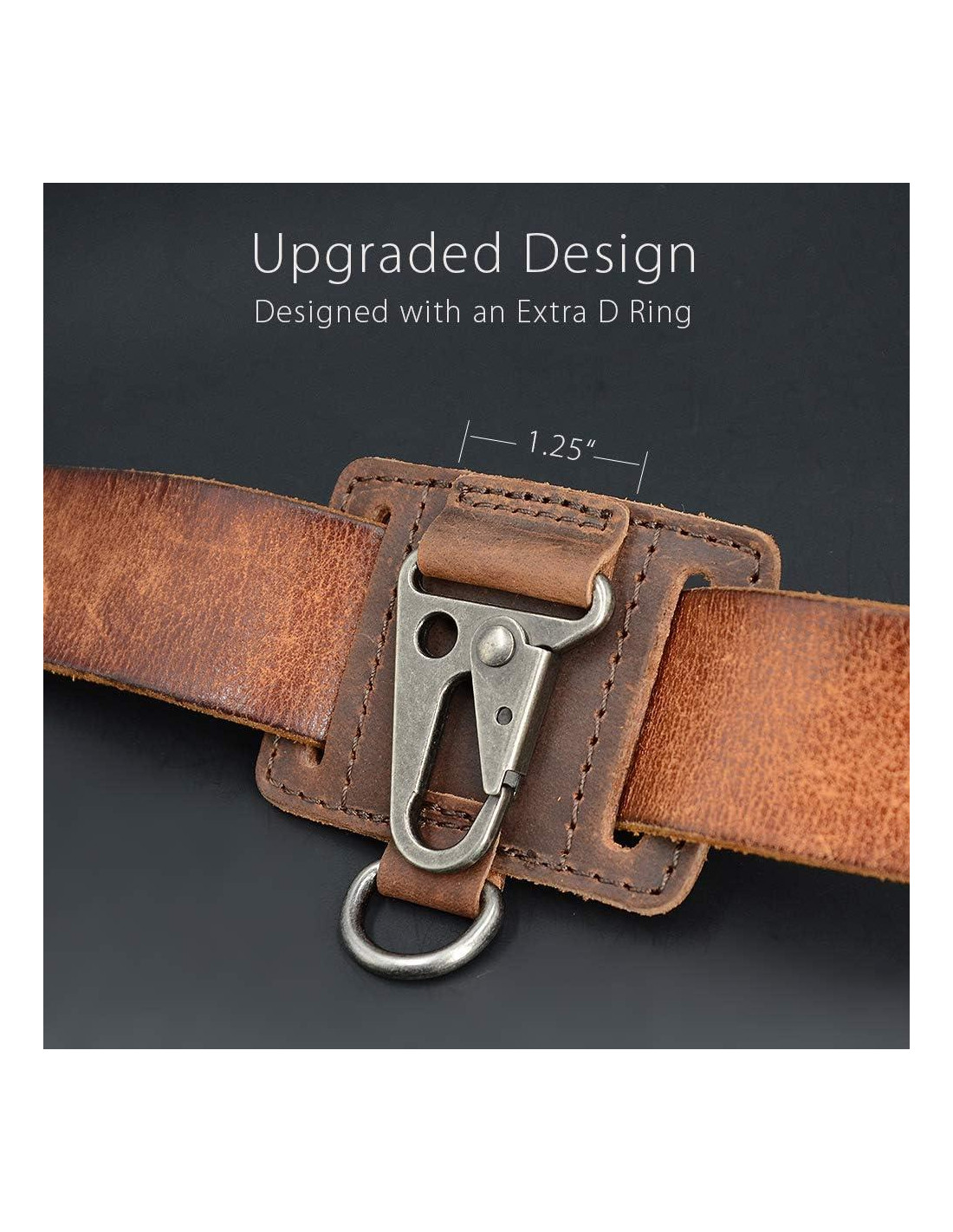 - CLIP DE CINTURÓN PARA LLAVERO DE CUERO - diseño robusto y resistente, llavero con clip para cinturón. Anillo D adicional para llevar llaves extra en el cinturón.