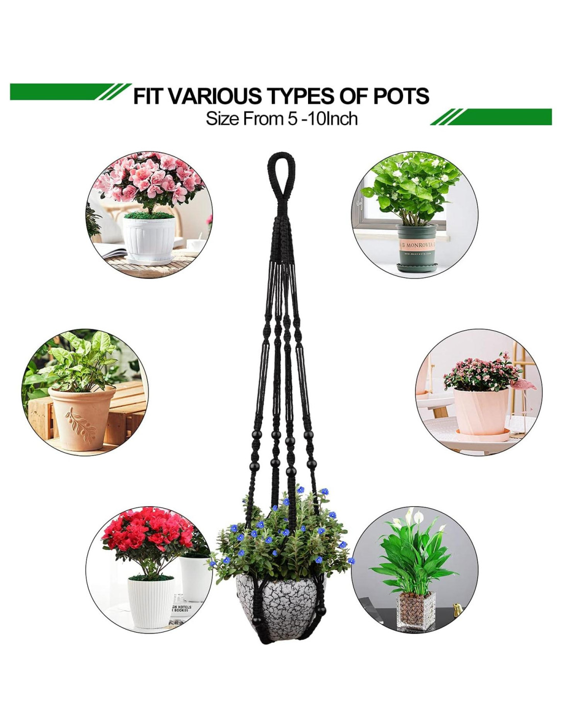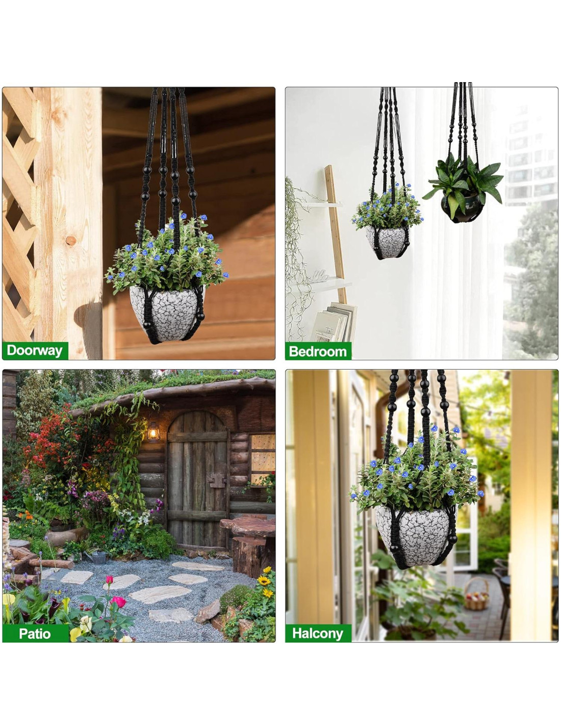 - Una Talla que se Ajusta a la Mayoría y Color Natural - El conjunto de ganchos grandes para colgadores de plantas boho-chic mide aproximadamente 35 pulgadas de arriba a abajo y 3.4 pulgadas de ganchos, se ajustará a una variedad de formas y diámetros de 5 a 10 pulgadas como 4" 5" 6" 7" 8" 9" 10" macetas de flores. Ideal para colgar todo tipo de macetas, incluyendo cerámica, macetas de metal, macetas de plástico, etc. Los colgadores de plantas boho de macramé negro para interiores pueden ahorrar espacio en estantes y embellecer cualquier rincón interior o exterior, añadirán una estética natural a tu hogar