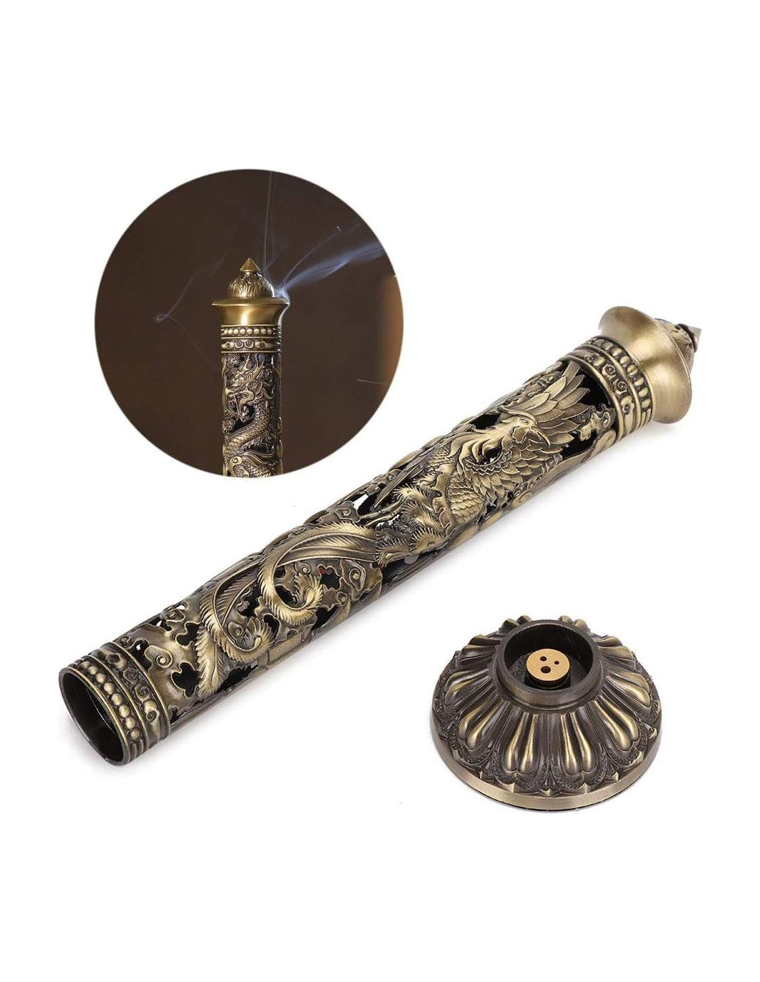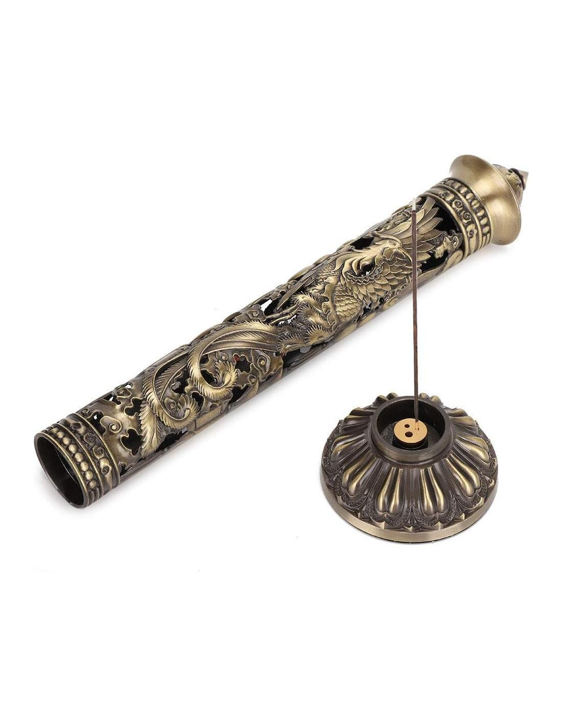 - SOPORTE PARA INCIENSO La forma del incienso es simple y hermosa, el relieve de dragón y fénix, delicado y elegante, el proceso de hueco, el ritmo antiguo es melodioso.