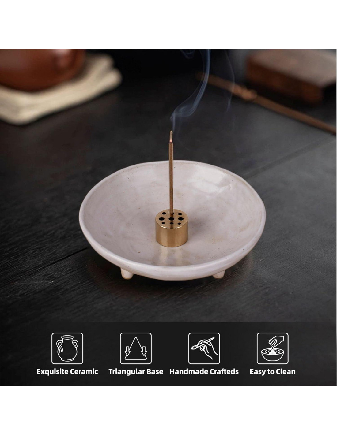 - Fácil de Limpiar, Resistente al Calor y Duradero: Hecho de cerámica cocida a alta temperatura, este quemador de incienso es resistente al calor, duradero y construido para durar. La superficie suave previene la acumulación de cenizas, lo que facilita la limpieza: simplemente limpia con un paño húmedo o enjuaga con agua. Una adición práctica y duradera a tu colección de fragancias para el hogar.