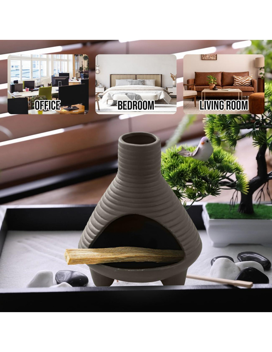 - Hecho a mano: El Soporte de Palo Santo está meticulosamente hecho a mano por artesanos calificados. Cada soporte está hecho de arcilla de origen local y pasa por un proceso de doble cocción para garantizar durabilidad y calidad excepcional. Su tamaño compacto lo hace perfecto para escritorios o espacios pequeños.
