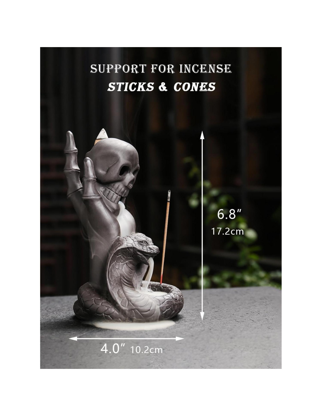 - [ Soporte de Quemador de Doble Uso ] - ¡Quemar conos y varitas de incienso al mismo tiempo es aún más genial! El quemador de incienso de cascada de Calavera de Serpiente se puede usar no solo como un soporte para conos de incienso, sino también como un soporte para varitas de incienso. El agujero para varitas es adecuado para todo tipo de varitas de incienso, mientras que también puedes ajustar la dirección de la varita. Es un soporte ideal para varitas de incienso y quemador de conos de incienso.