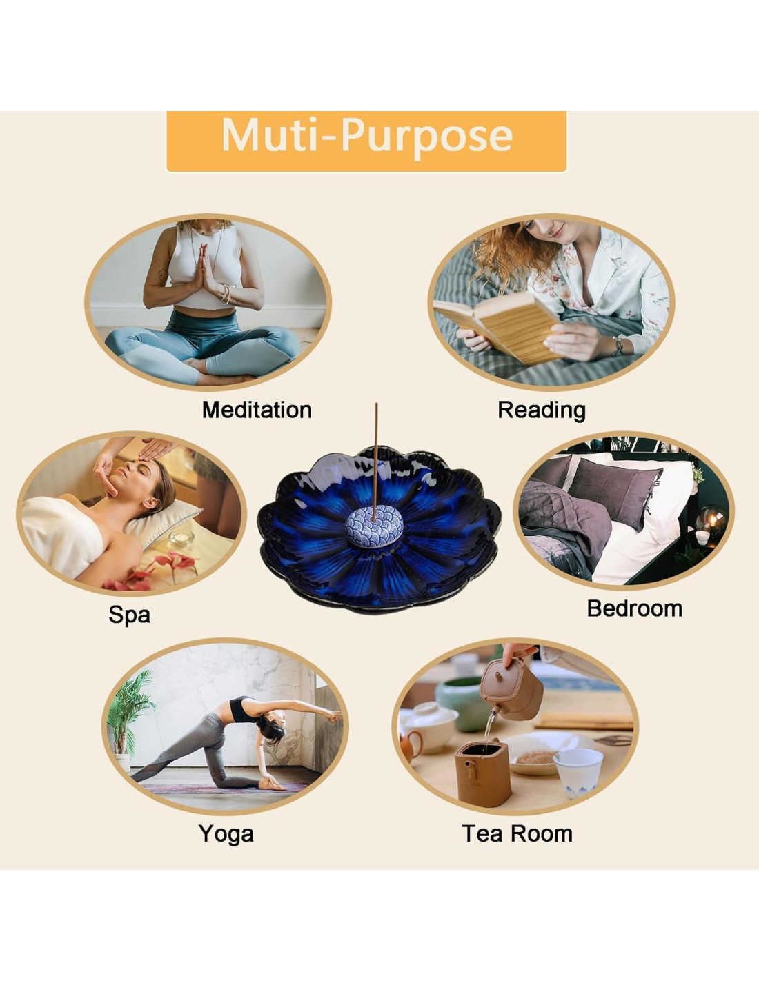 - Ampliamente utilizado: Este soporte de incienso de diseño único es un gran regalo para personas que practican yoga, meditación, terapia de energía. También se puede colocar en la sala de estar, dormitorio, estudio y oficina para mejorar el sueño y purificar la energía negativa.
