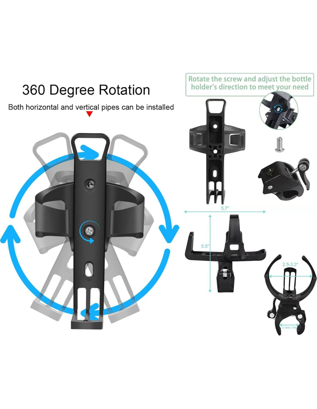 - AJUSTABLE - Rotación ajustable de 360 grados, gira el tornillo para asegurarte de que se ajuste al tamaño de tu tubo, elige fácilmente la orientación del soporte de botella según tus necesidades, haciendo que sea más conveniente para ti usar, este soporte para taza de bicicleta se puede instalar en el manillar de la bicicleta, debajo del asiento, tubo inferior, horquilla delantera, tubo frontal. Rango de sujeción de 1.9-4.3 cm.