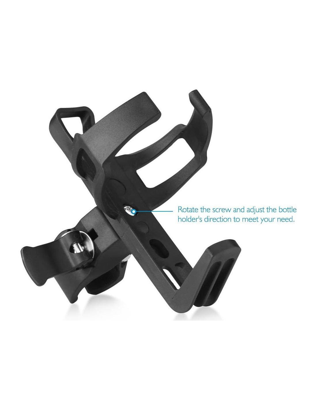 - Clip Rotatable Ajustable 360 - El clip de este soporte para botellas de agua de bicicleta se puede ajustar para adaptarse al manillar de diferentes tamaños, y también se puede rotar 360 grados para la instalación en diferentes posiciones. Así que este soporte para tazas de bicicleta se puede instalar en el manillar de la bicicleta, debajo del asiento, en el tubo inferior, en la horquilla, en el tubo frontal. Rango máximo de sujeción: 4.3cm (1.7 pulgadas).