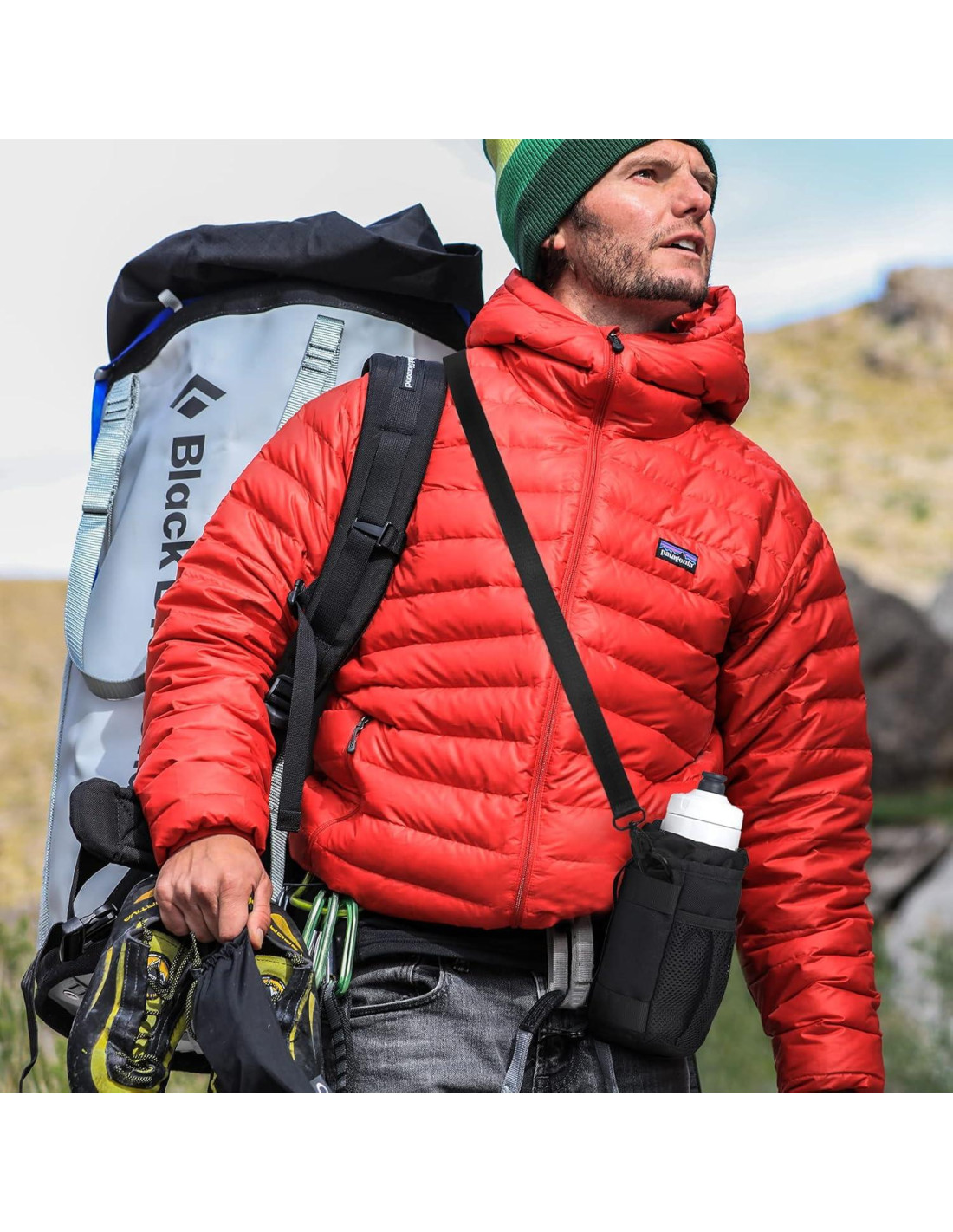 - Capacidad Grande Mejorada: Con un diseño de cordón que se puede contraer libremente, puede sostener fácilmente una botella de agua de tamaño 12oz (0.35 L) a 34oz (1 L) cuando está correctamente instalada.