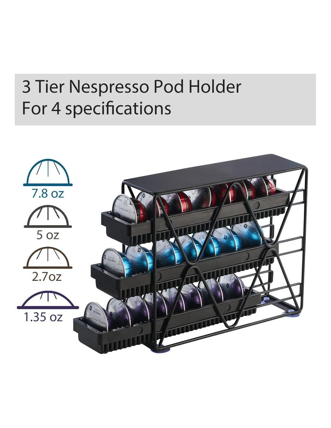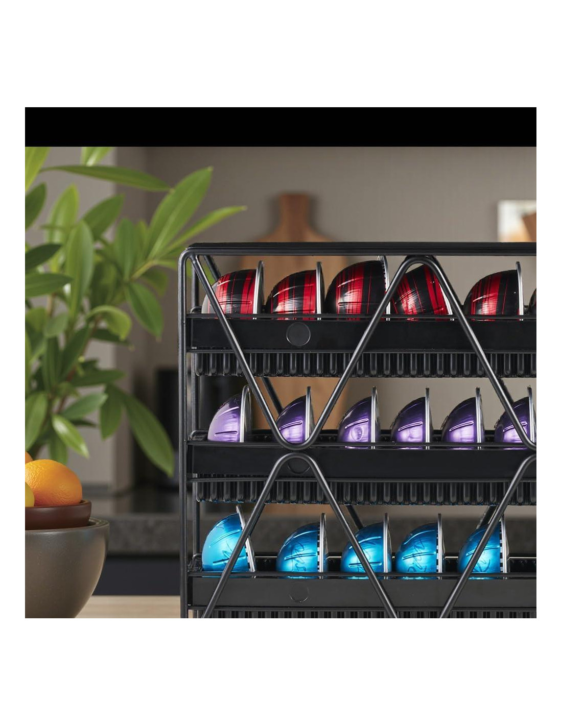 - diseño compacto y que ahorra espacio: el soporte tiene un diseño vertical con múltiples niveles, lo que lo convierte en una solución eficiente para organizar cápsulas Nespresso Vertuo sin ocupar mucho espacio en la encimera.