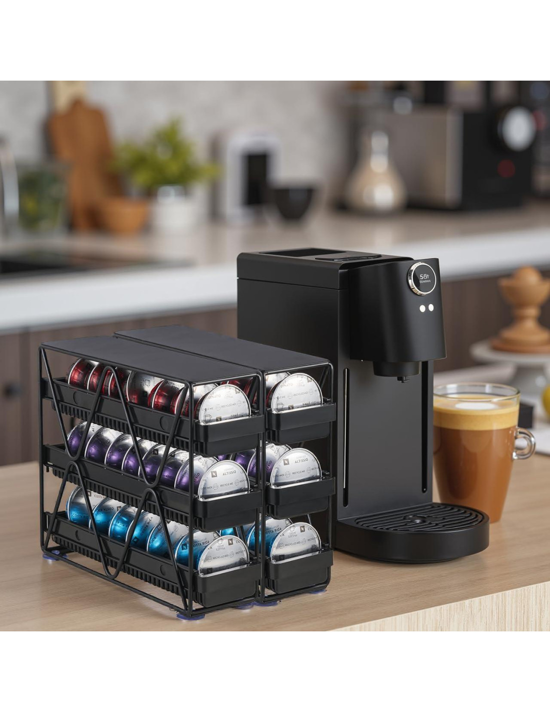 - organización fácil: las cápsulas Nespresso Vertuo se almacenan de manera clara y accesible, lo que facilita ver y elegir el sabor o tipo que deseas sin tener que buscar en una caja desordenada.