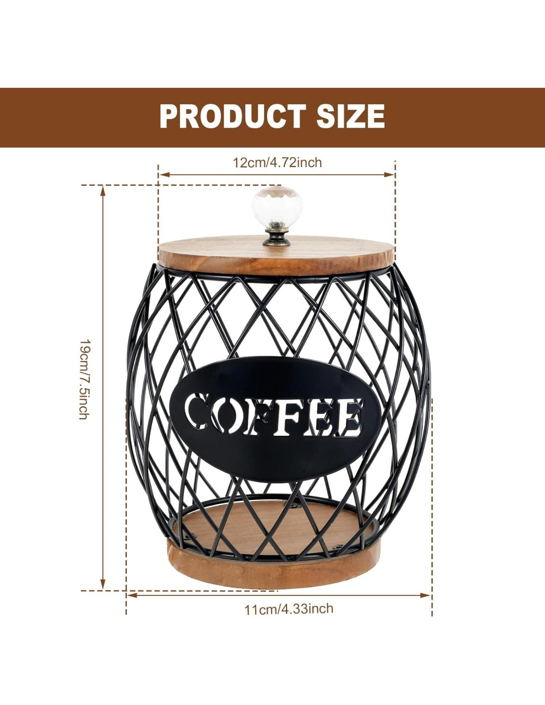 - Textura de Calidad: La cesta de almacenamiento de cápsulas de café está hecha de hierro y madera de primera calidad, resistente y confiable, proceso de pintura horneada, anti-óxido. Fondo de madera, colocación estable