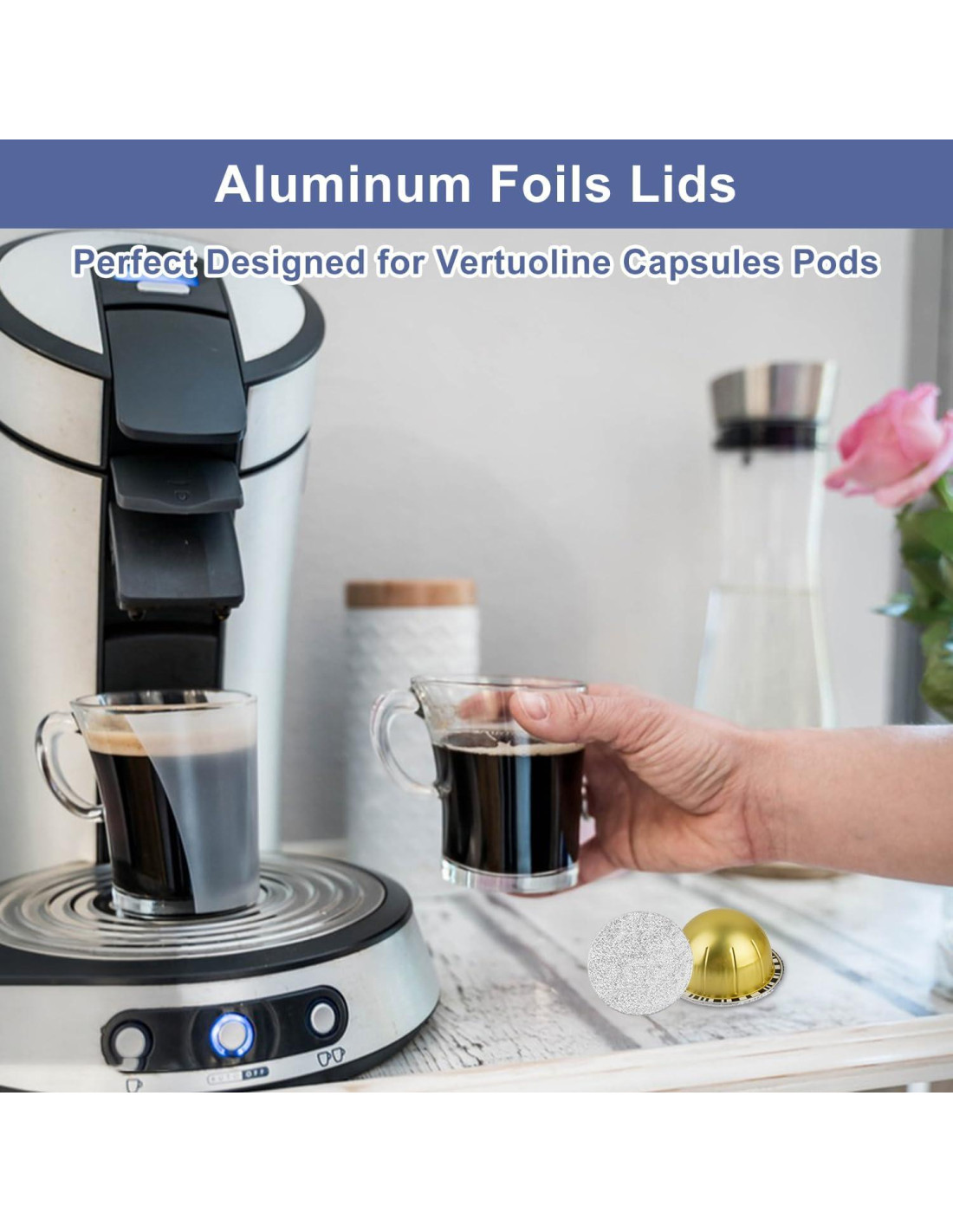 - Juego Perfecto: El kit de sellos de aluminio incluye 120 tapas de espresso de aluminio con un diámetro de 62mm (2.44 pulgadas), una cuchara, un cuchillo utilitario y un cepillo. (Cápsula vacía no incluida) Con este kit, puedes rellenar y reutilizar tus cápsulas vertuo, ahorrando dinero y reduciendo desperdicios